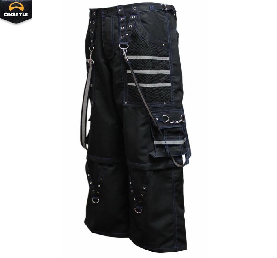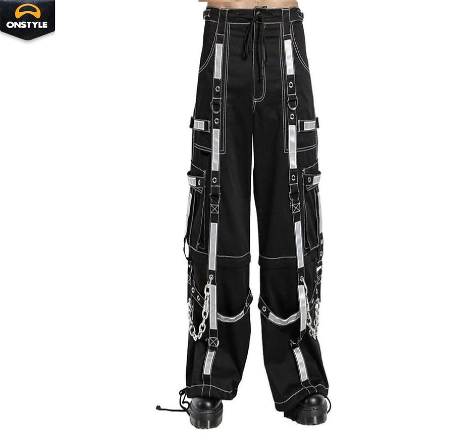 Men's Gothic 100% Cotton Plain Flared Pants Punk Rock Style Eyelet Cargo Belly with Contrasting Personalized Casual Streetwear