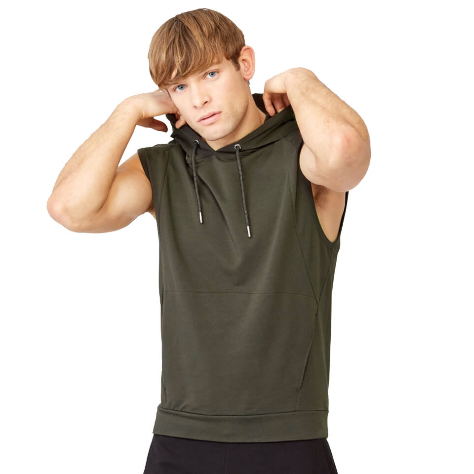 Men's Gym Hoodies White Color Sleeveless Knitted Anti-Shrink and Anti-Wrinkle for Summer Exercise
