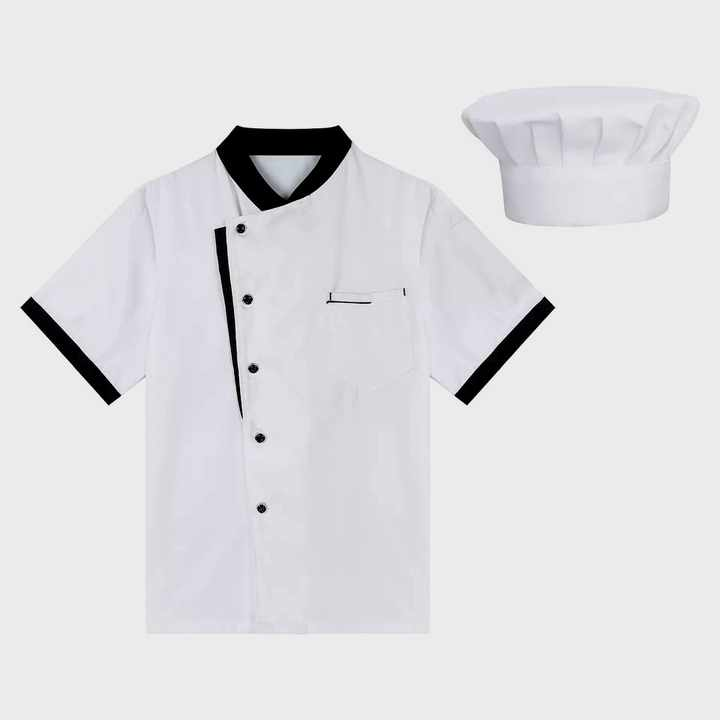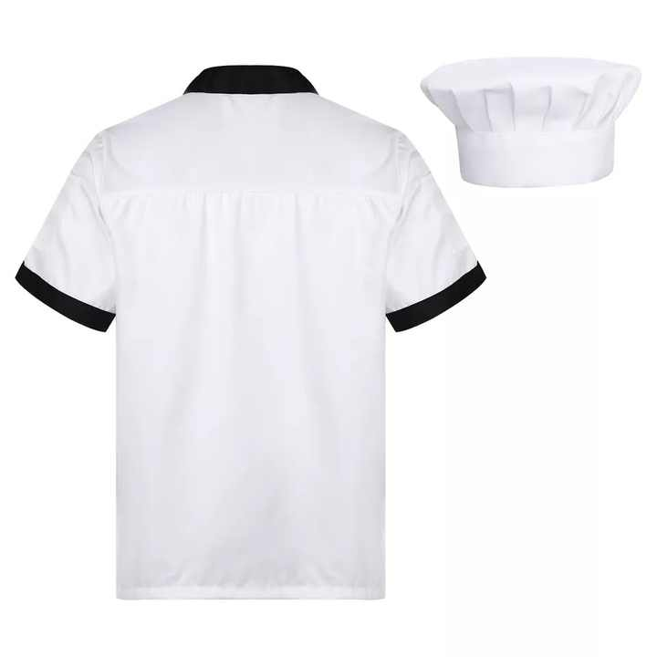Men's Half Sleeve Single-Breasted PolyCotton Chef Coat & Hat Set Woven Kitchen Uniform for Restaurants and Hotels