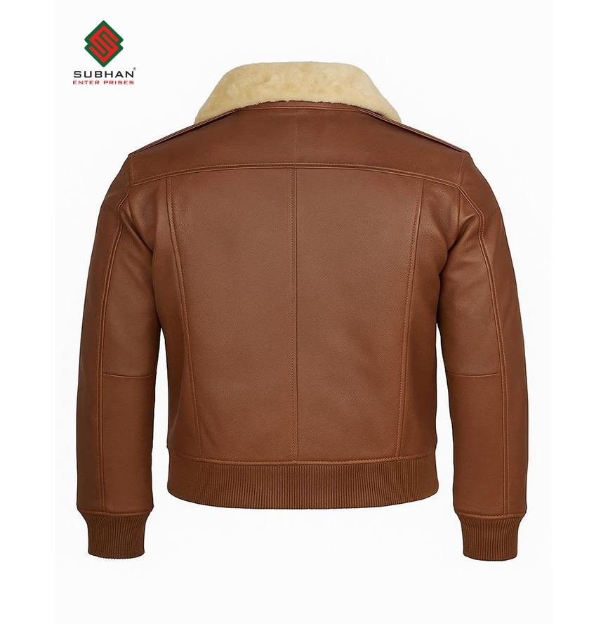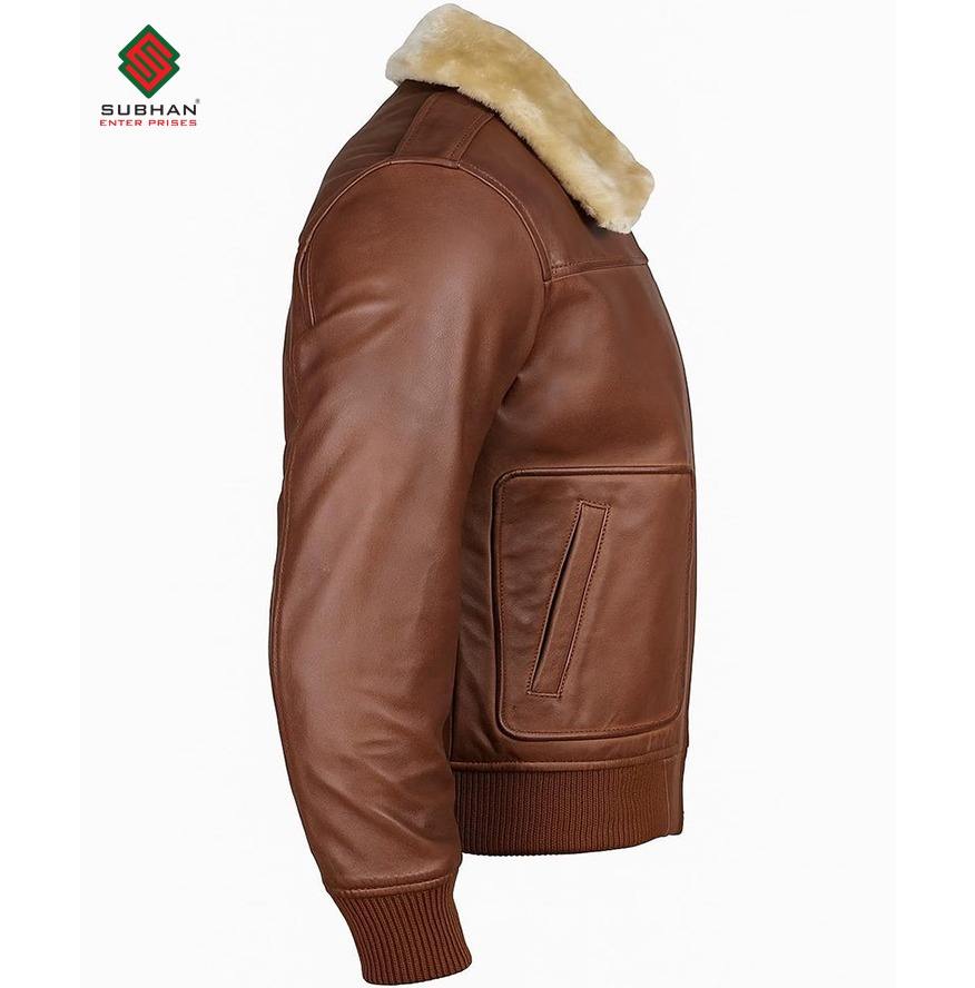 Men's Handmade Lambskin Brown Leather Bomber Jacket Vintage Biker with Quilted Fur Collar