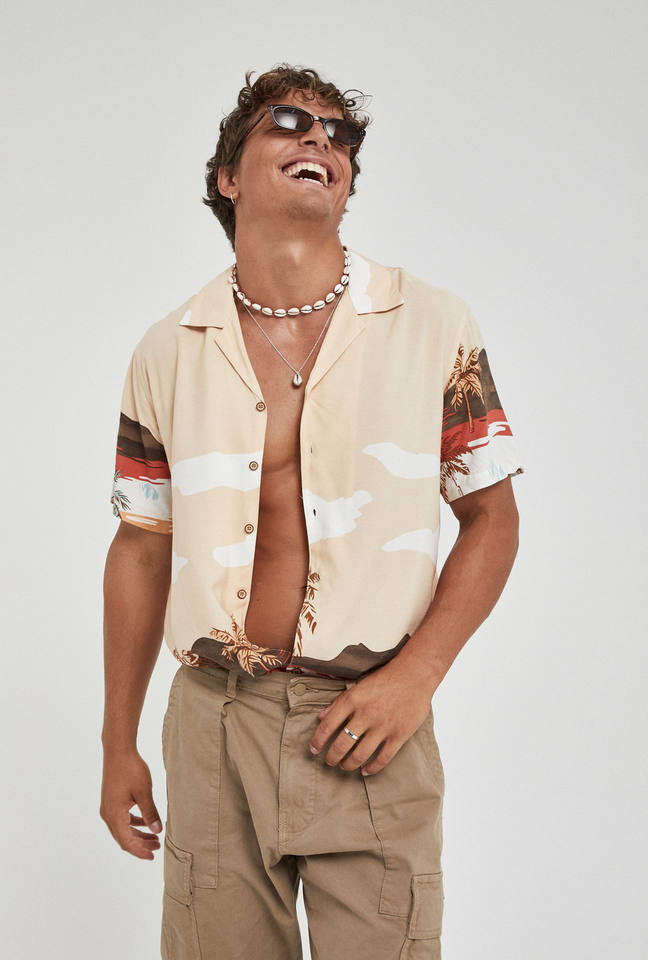 Men's Hawaiian Beach Shirt with Intricate Palm Trees Soft viscose Design Regular fit shirt