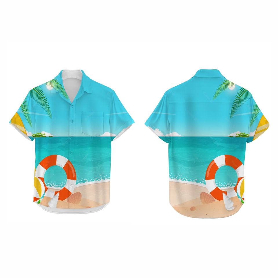 Men's Hawaiian Shirts Stand Collar Short Sleeve Breathable Beach Casual Button Down Satin Knitted