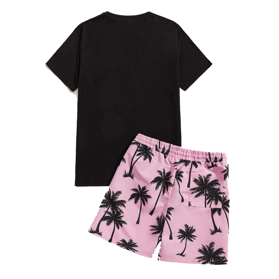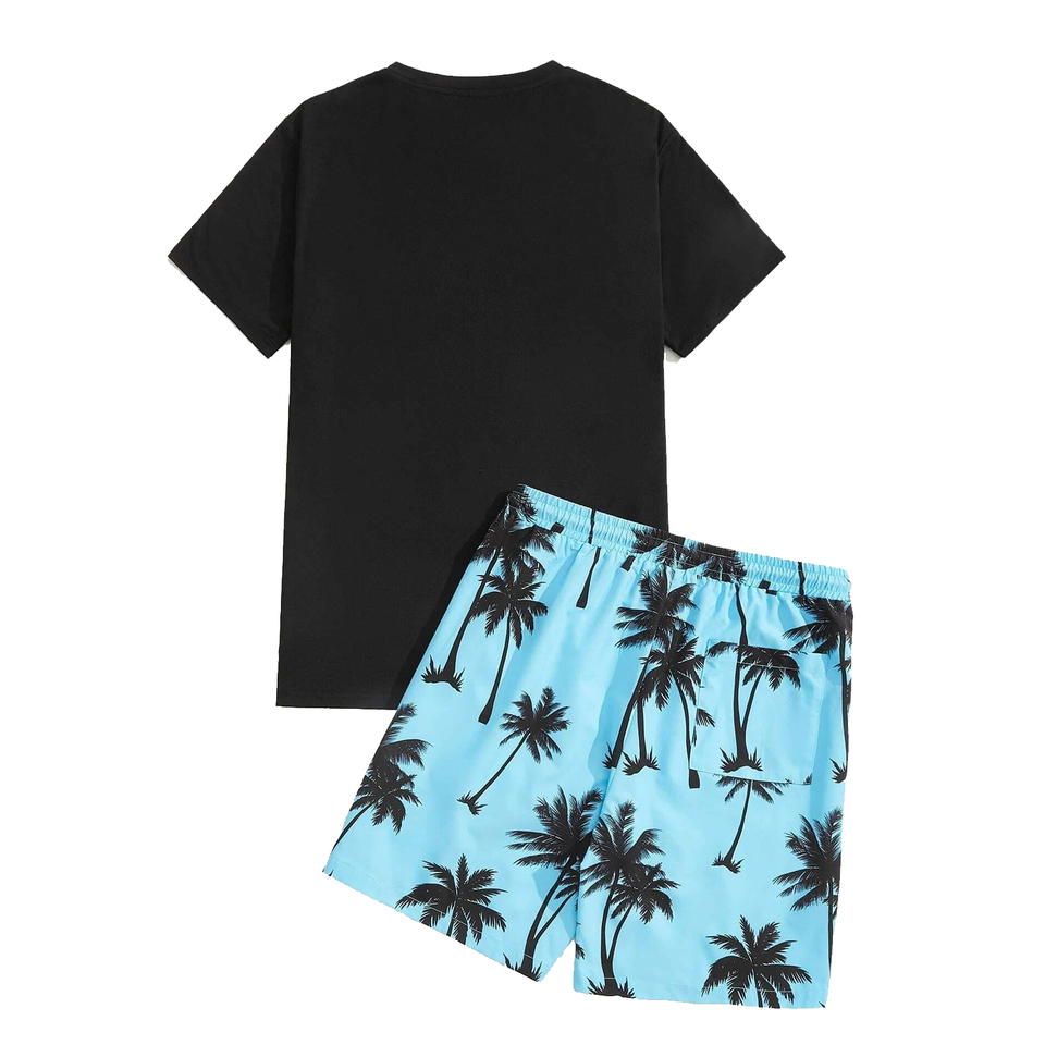Custom Men's Hawaiian Style Thermal Summer Casual Cotton Short Sleeve T-Shirt with Knee-Length Beach Shorts
