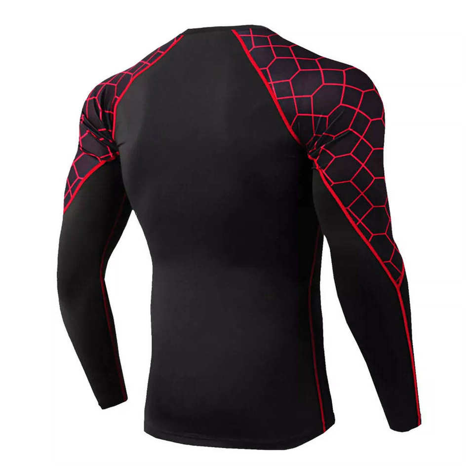 Men's Heat-Transfer Printed Washed Long Sleeve Compression Rash Guard Shirts for Swim Running Biker 100% Polyester