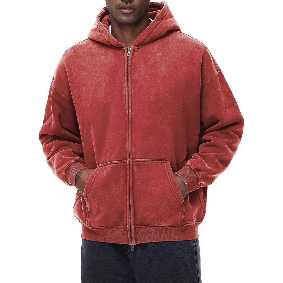 Men's Heavyweight 100% Cotton Pullover Hoodie Vintage Blue Acid Wash Full Zipper High Quality Streetwear Embroidered Plain Dyed