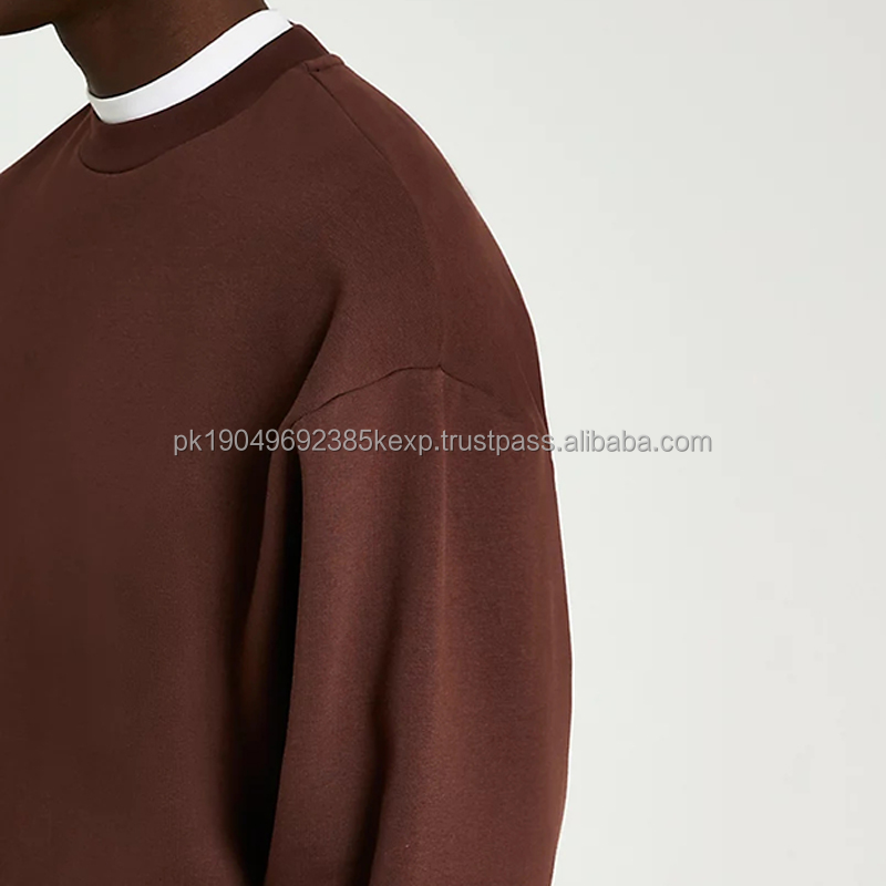 Men's Heavyweight 360GSM Crewneck Sweatshirt Custom Bulk Logo Embroidered Brown Jumper Oversized Hoodies for Winter