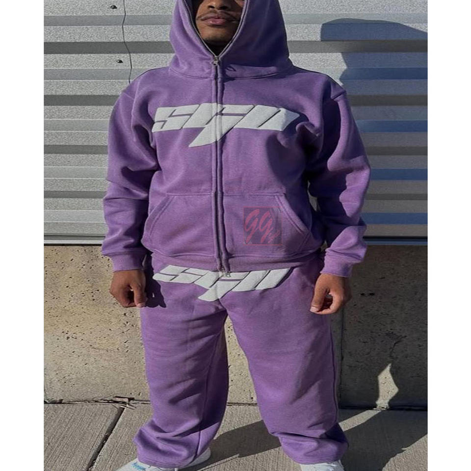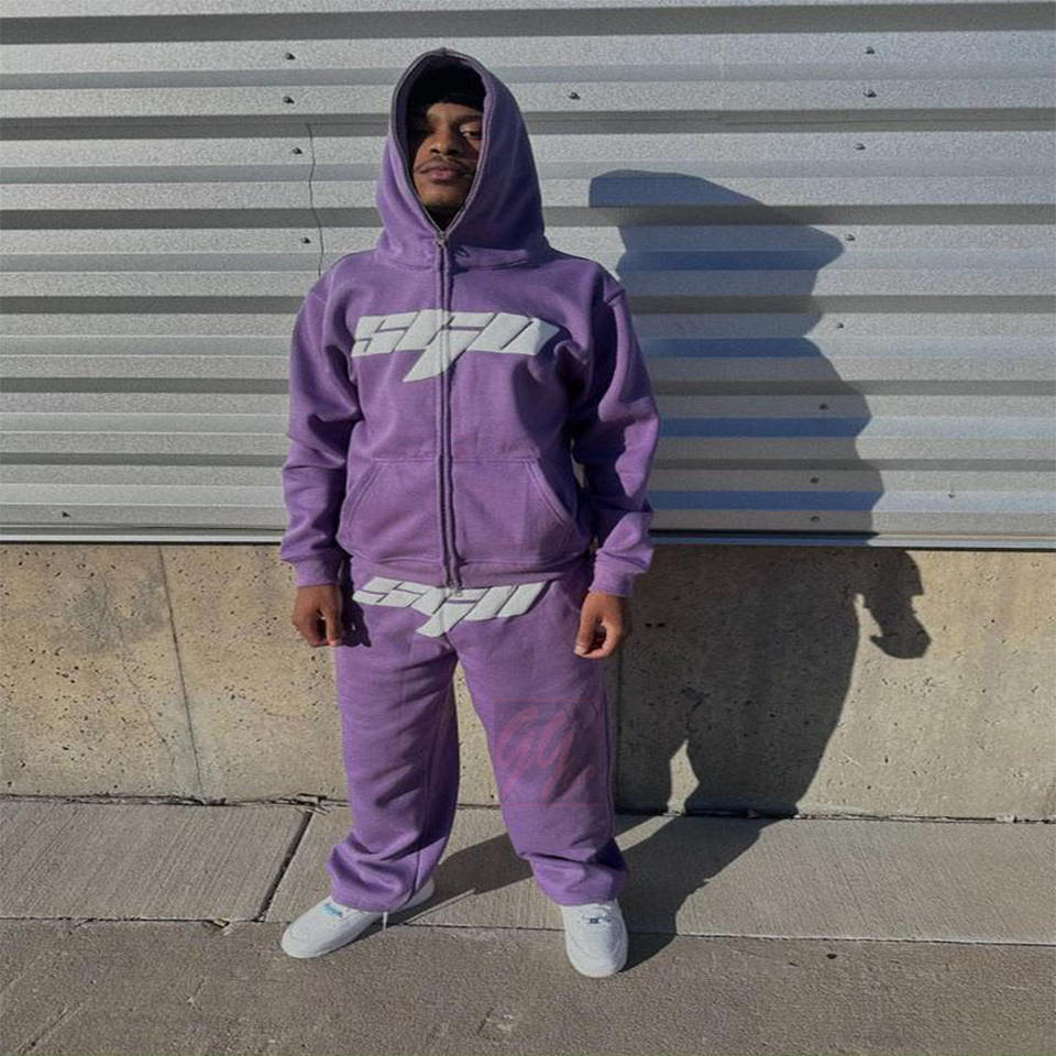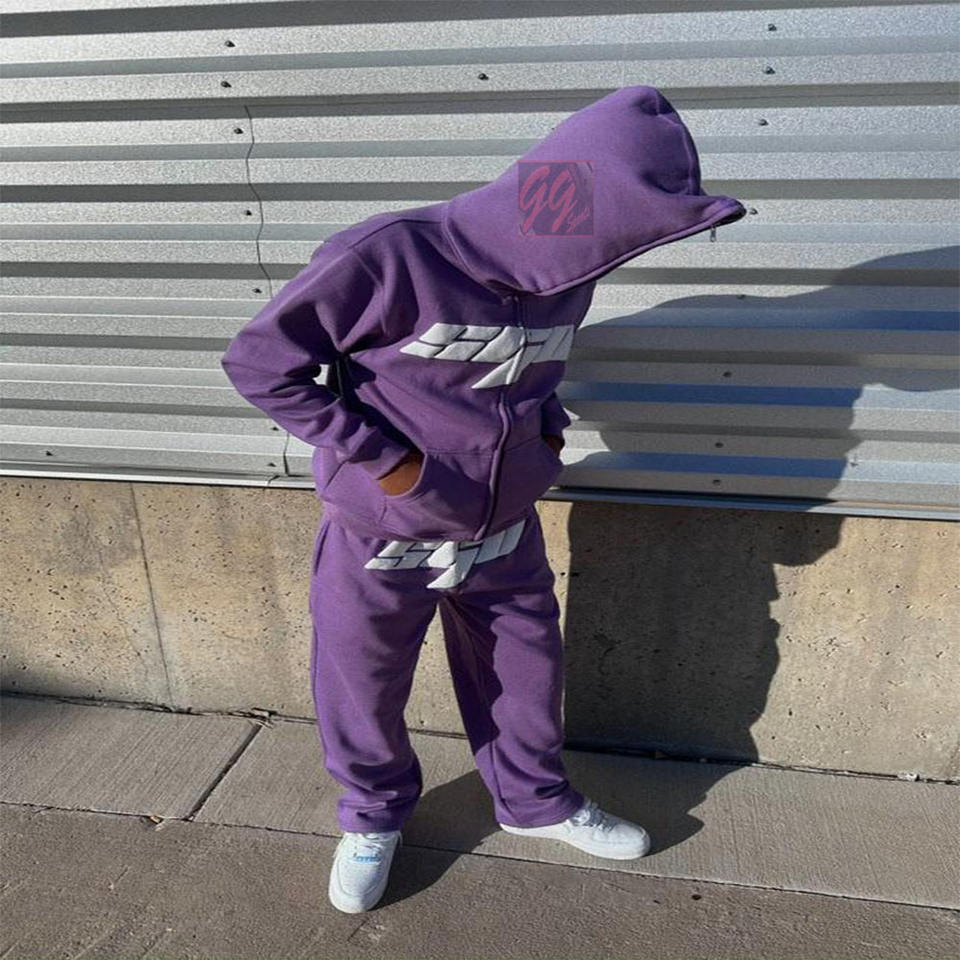 Men's Heavyweight 470 GSM Full-Zip Hoodie & Baggy Sweatpants Set 100% Cotton Puff Print Logo Boxy Fit Bulk Purchase Available