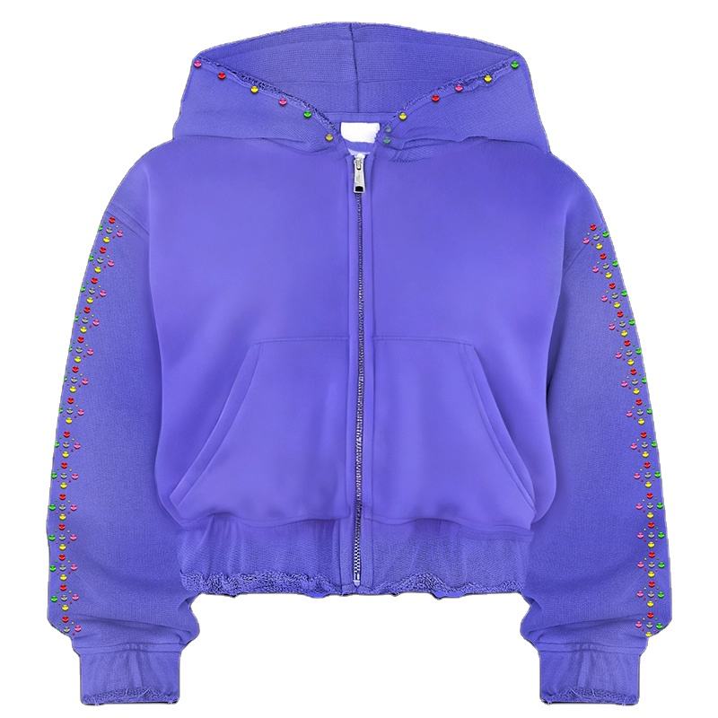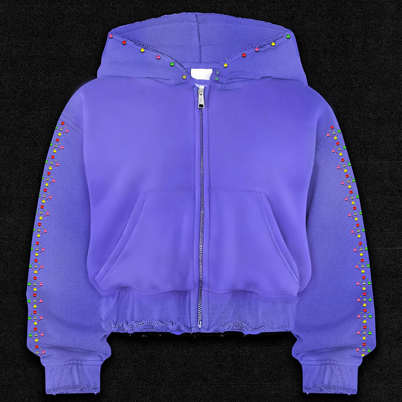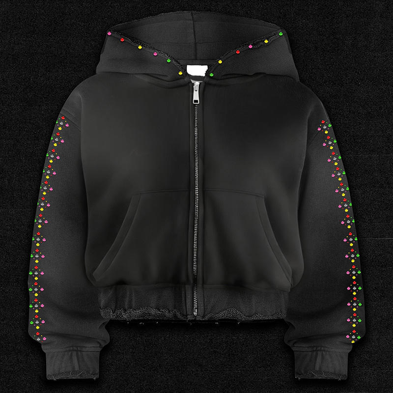 Men's Heavyweight Cotton Zip-Up Hoodie Colorful Rhinestone Embellished Casual Sweatshirt Drop Shoulder Fit for Winter hoodies