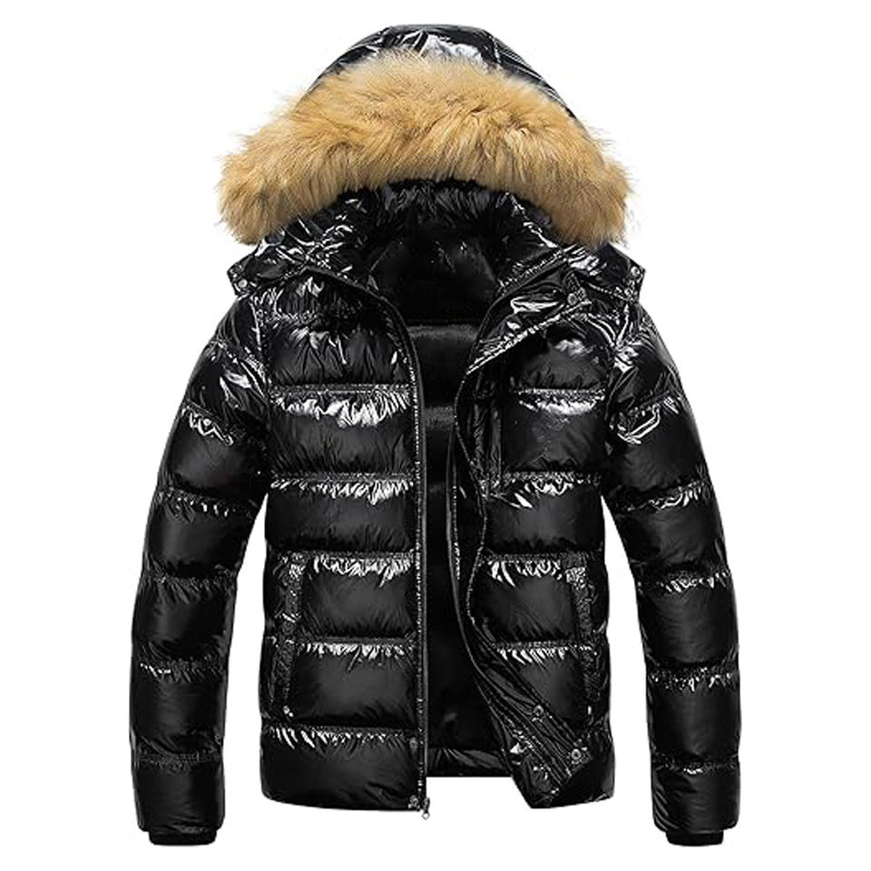 Men's Heavyweight Puffer Jacket Hood Water-Resistant Winter Coat Wind Resistance OEM Service shiny puffer jacket