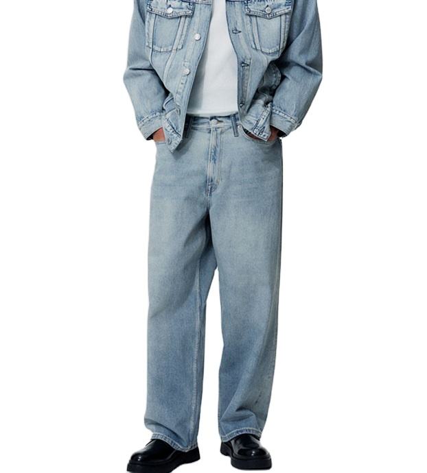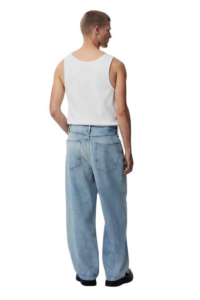 Men's High 100% Cotton Baggy Fit Denim Light Blue Jeans High Quality Rounded Legs Ankle Stack New Design Factory Wholesale Price
