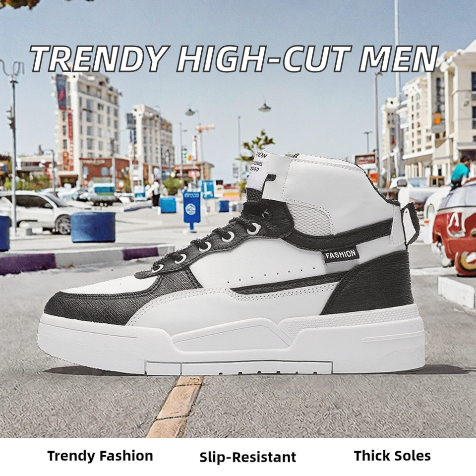 Men's High Cut Anti-Skid Casual Shoes with Thick Soles Trendy and Versatile for All Seasons-for Summer Autumn Winter Walking