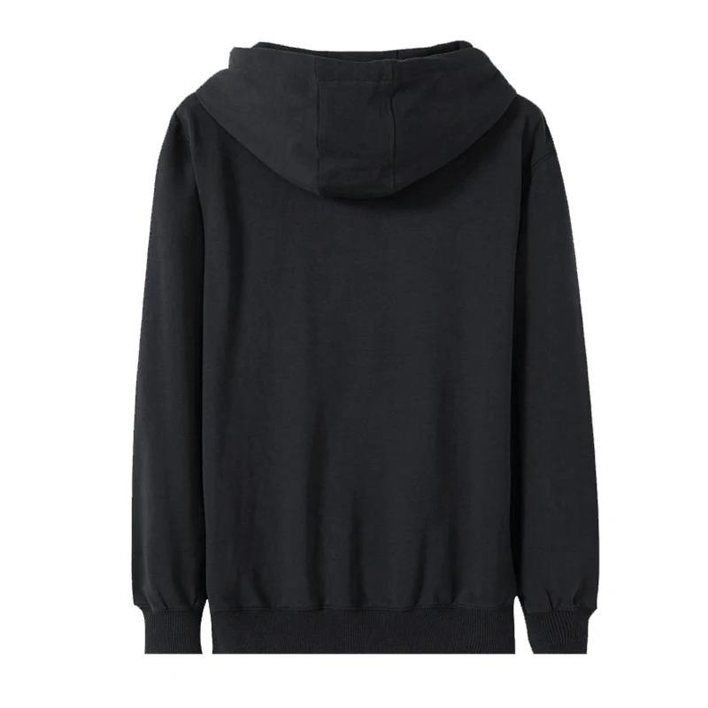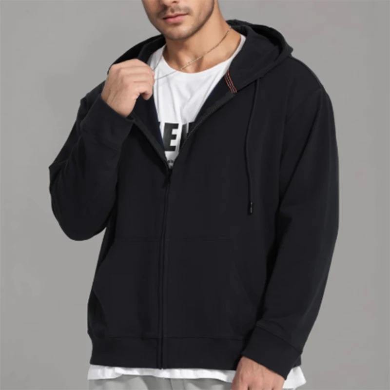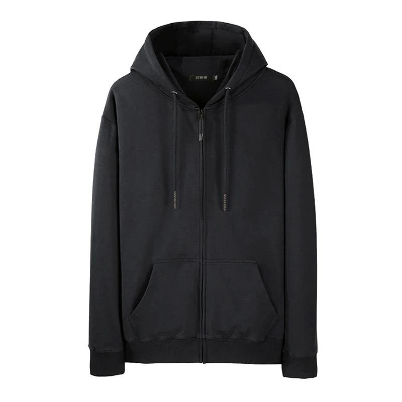 Men's High Quality 100% Cotton Long Sleeve Hooded Sweatshirts Black Casual Jackets with Zipper & Pockets Winter Autumn Outwears