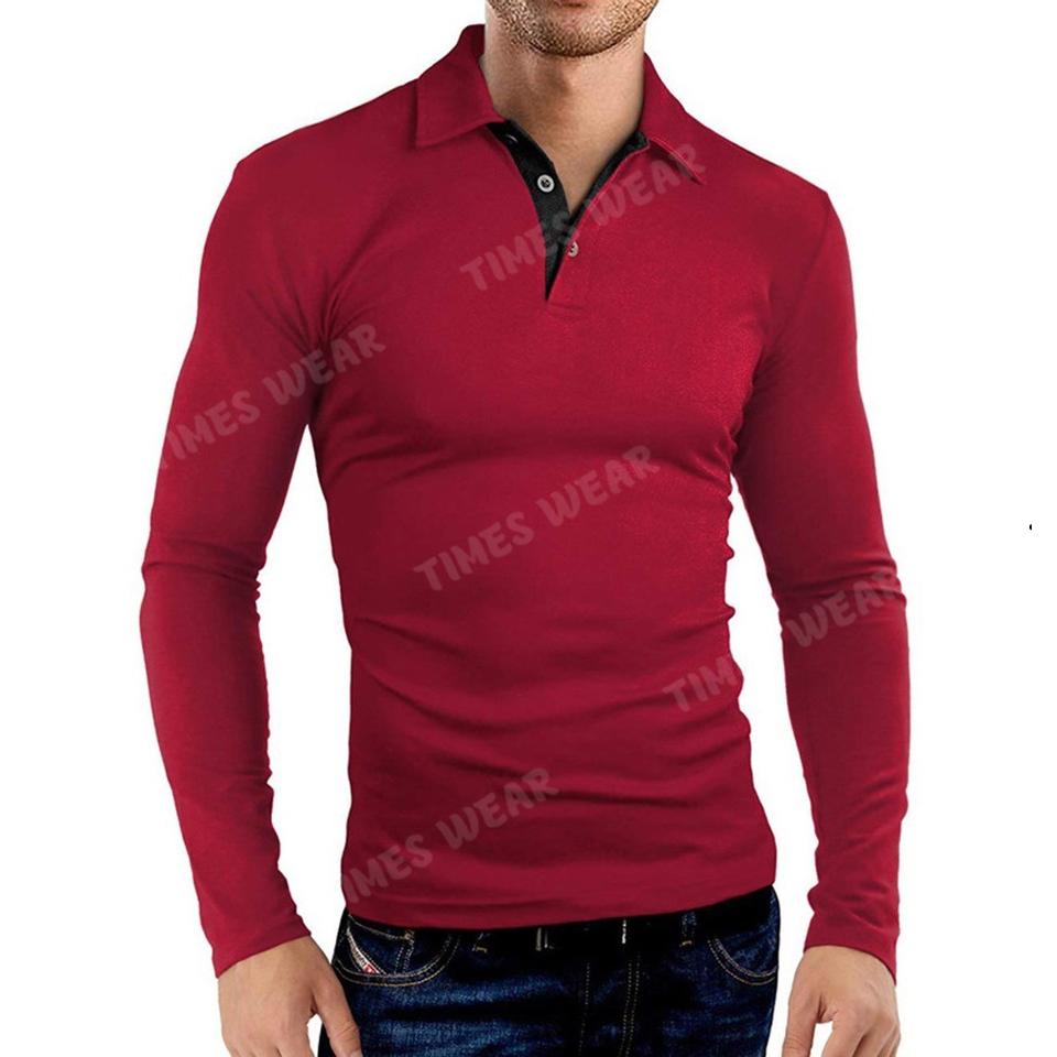 Men's High Quality 3 Button Full Sleeve Polo Neck European Polo Shirt