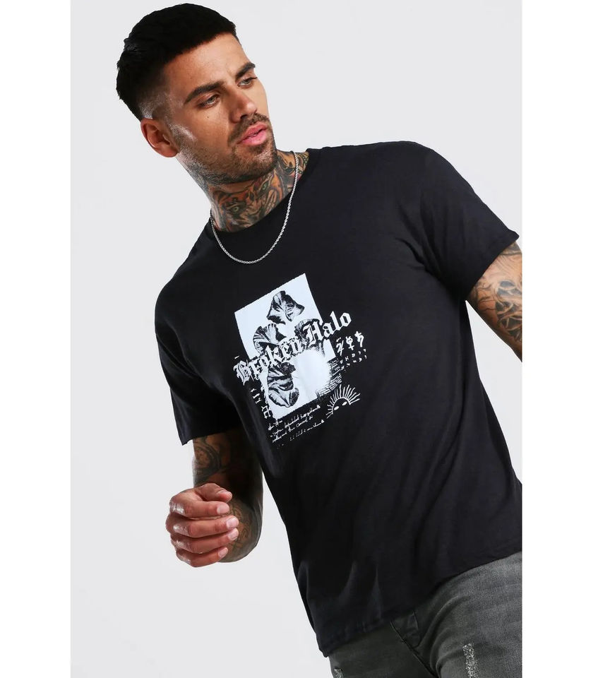 Men's High Quality Black Printed Summer T-Shirt 100% Cotton Wholesale Price Hot Sale Worsted Fabric