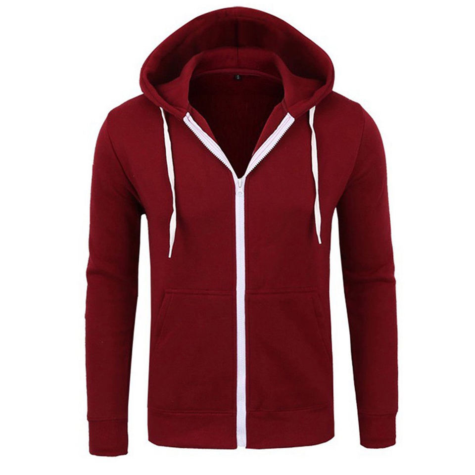 Men's High Quality Cotton Hoodie Thick Fleece Zipper-Up Winter Blank Slim Fit Full Zipper Solid Pattern