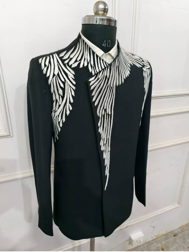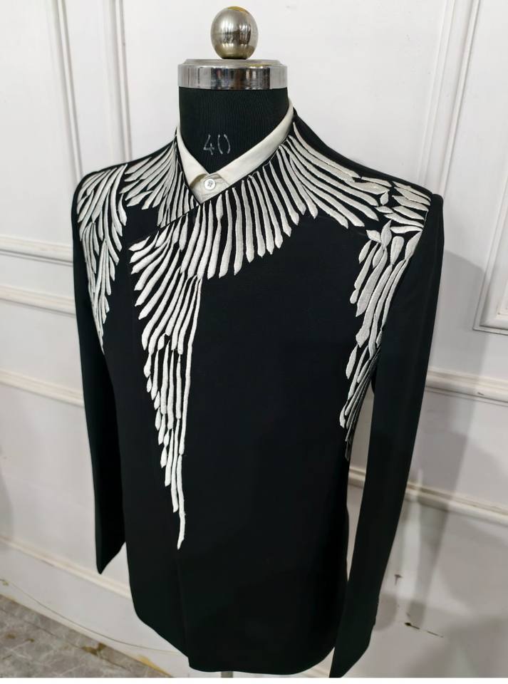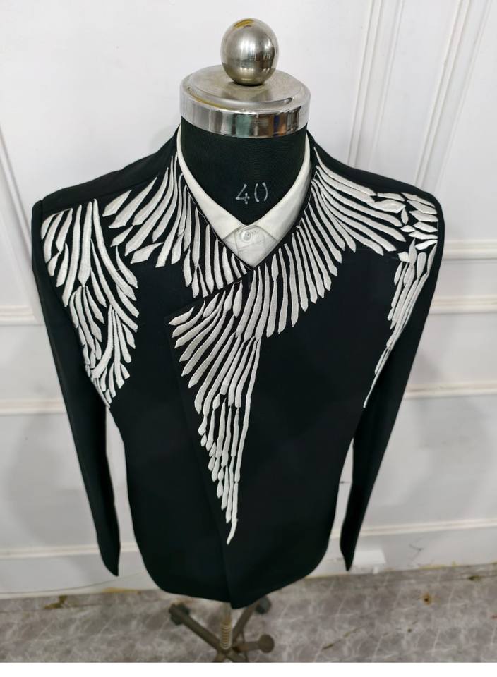 Men's High Quality Embroidery Black Suits 2 Pieces Plus Size Slim Fit Single Breasted Forms Wedding Dress Tuxedo for Men