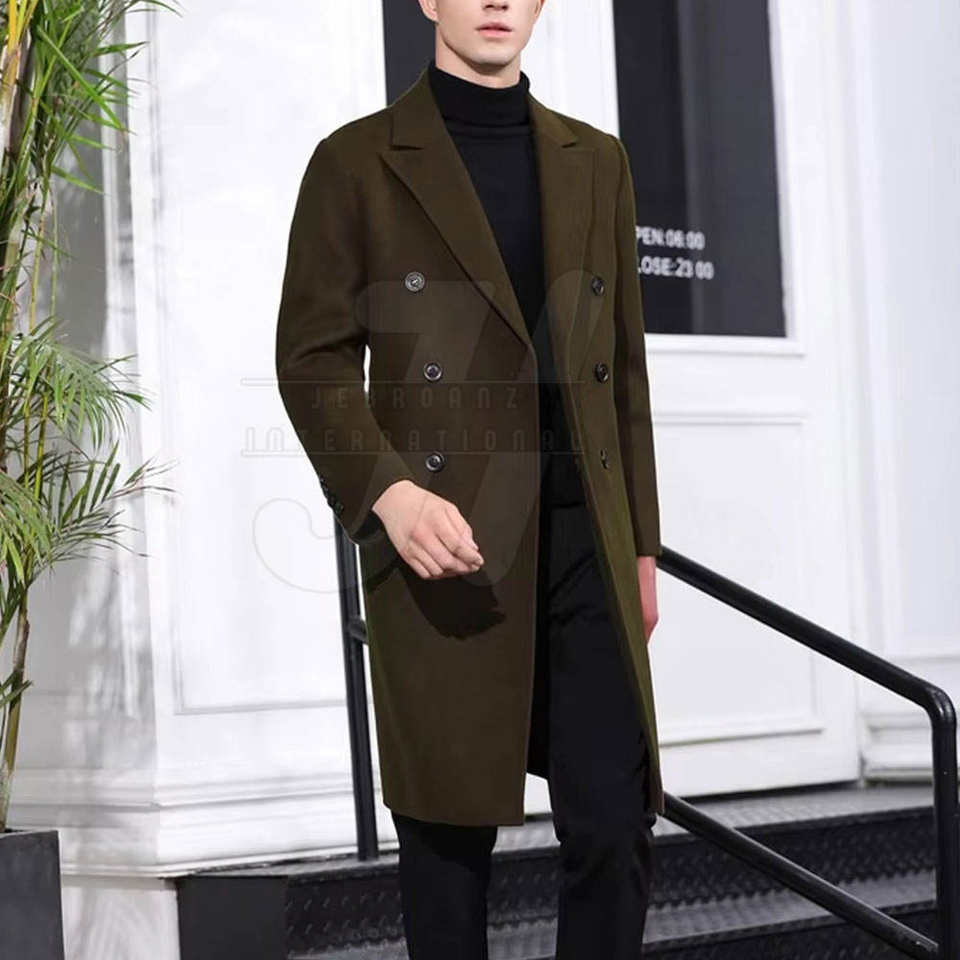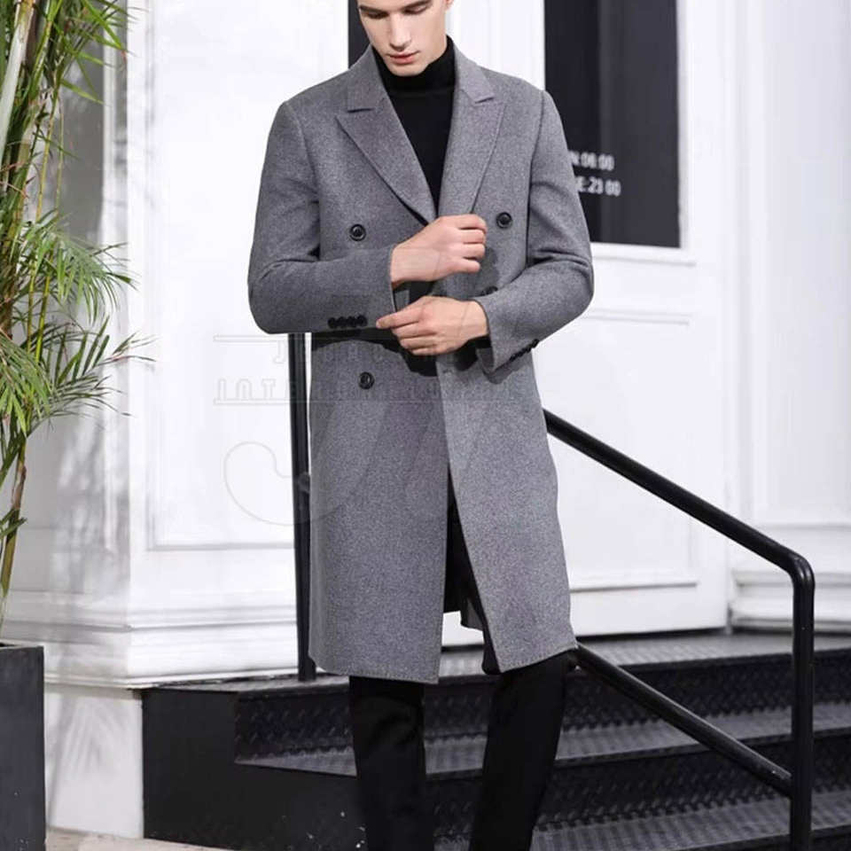 Men's High Quality Long Woolen Windproof Anti-Wrinkle Embossed Reversible Overcoat Casual Winter Work Outwear