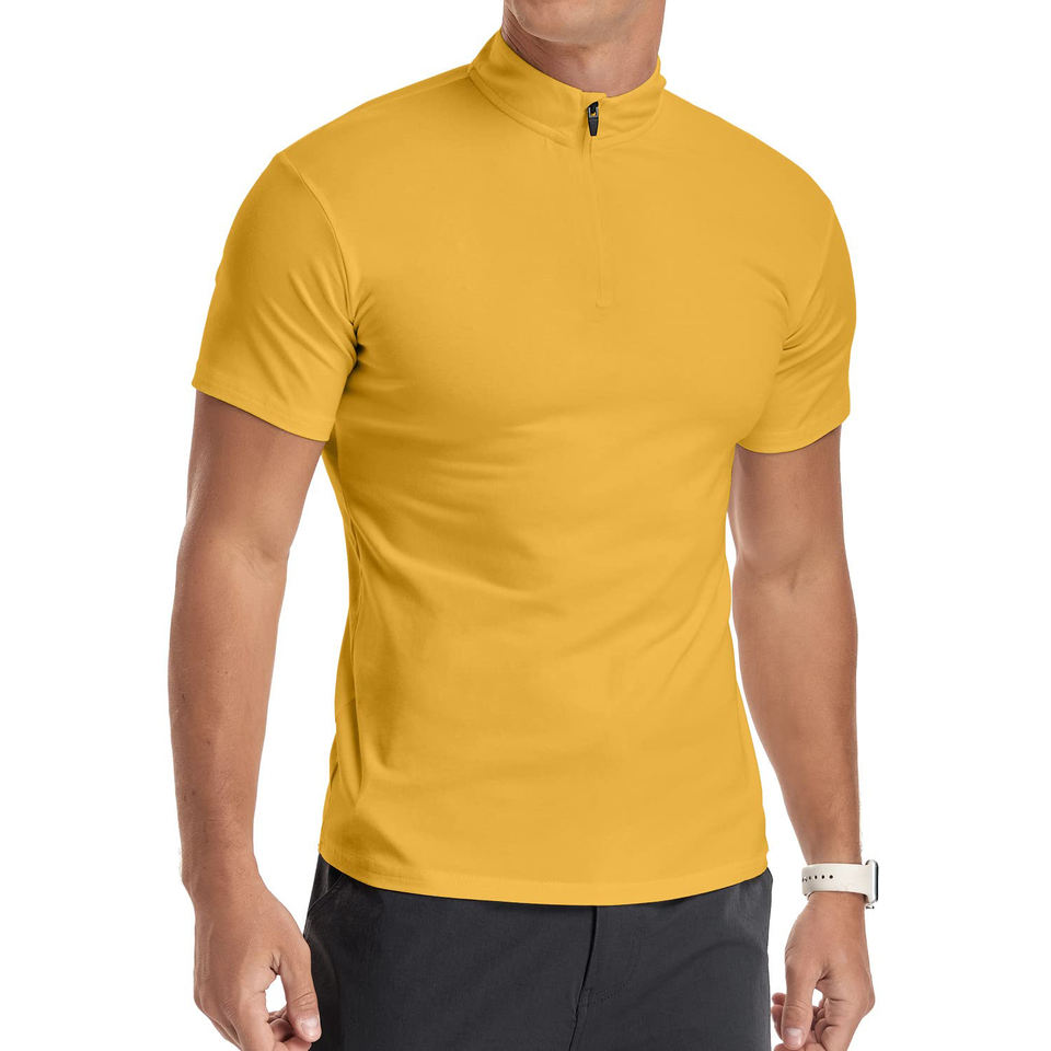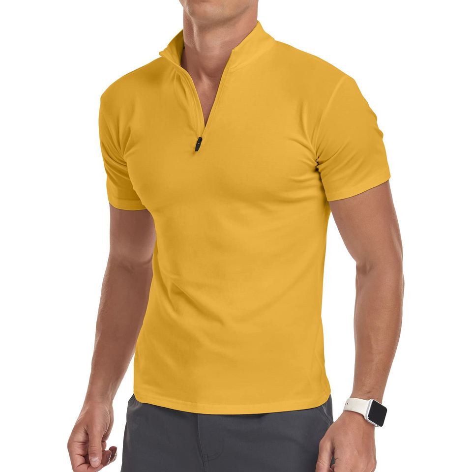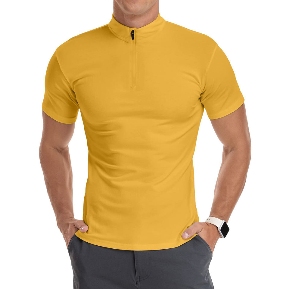 Men's High Quality Plain T Shirt Quick Dry Breathable Knitted Fabric with Custom Logo Printing Solid Pattern Zip Closure T-Shirt