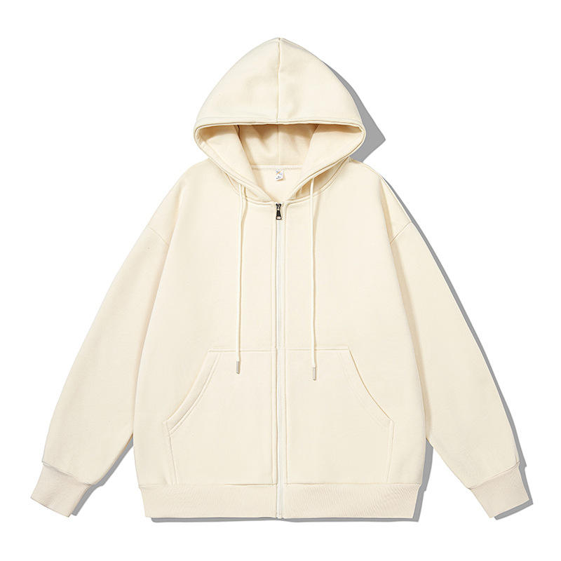 Men's High Quality Polyester and Terry inside Hoodie Custom Logo or OEM New Large Size Solid Zipper Spring Autumn-Plain Dyed
