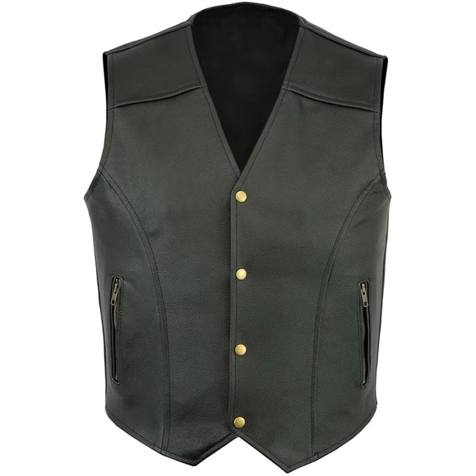Men's High Quality Slim Fit Leather Vest Breathable Reversible V-Neck Button Opening Casual Warm Summer Winter Outer Wear