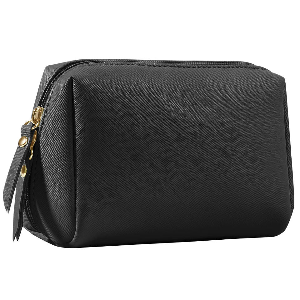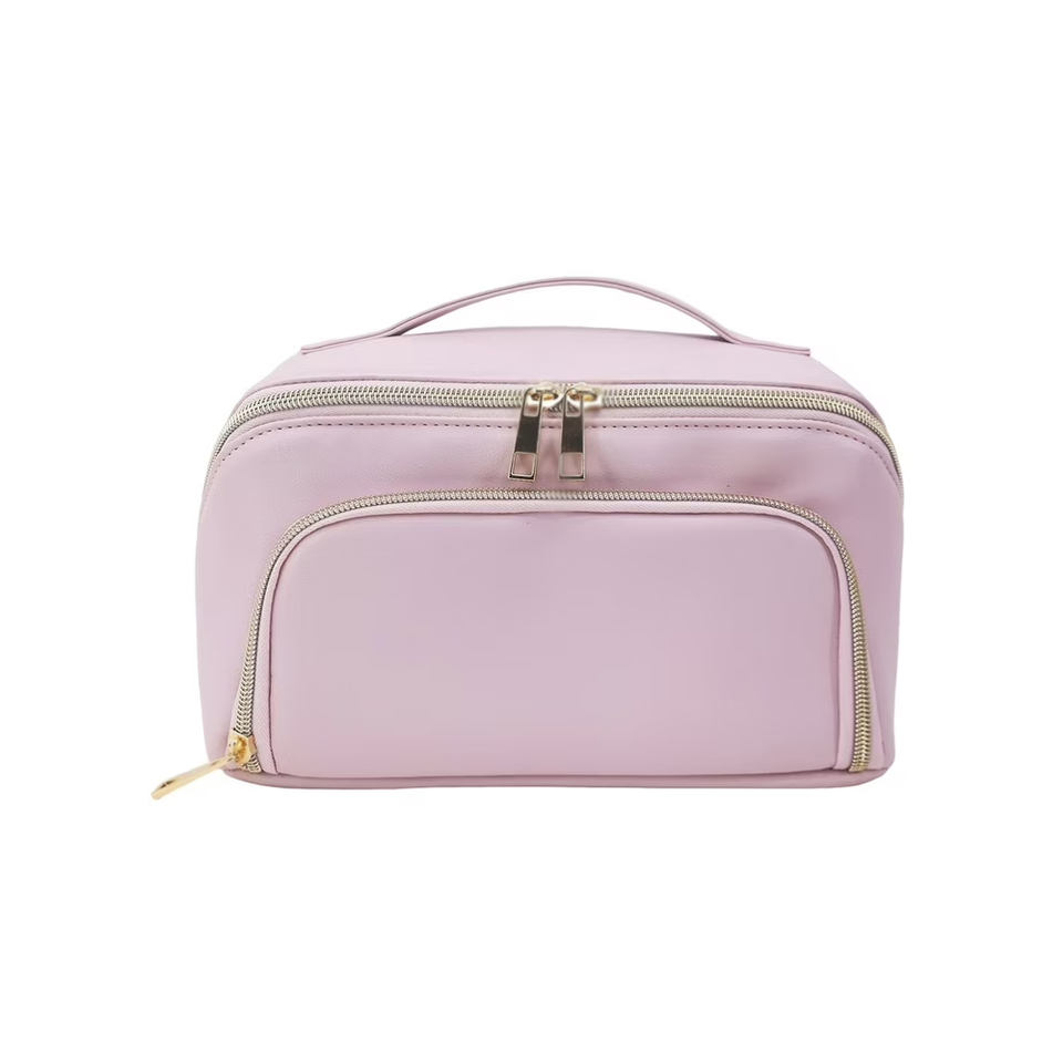 Men's High Quality Stylish Foldable Genuine Leather Cosmetic Bag Soft Handle Large Zipper Closure Panelled Design Travel Case