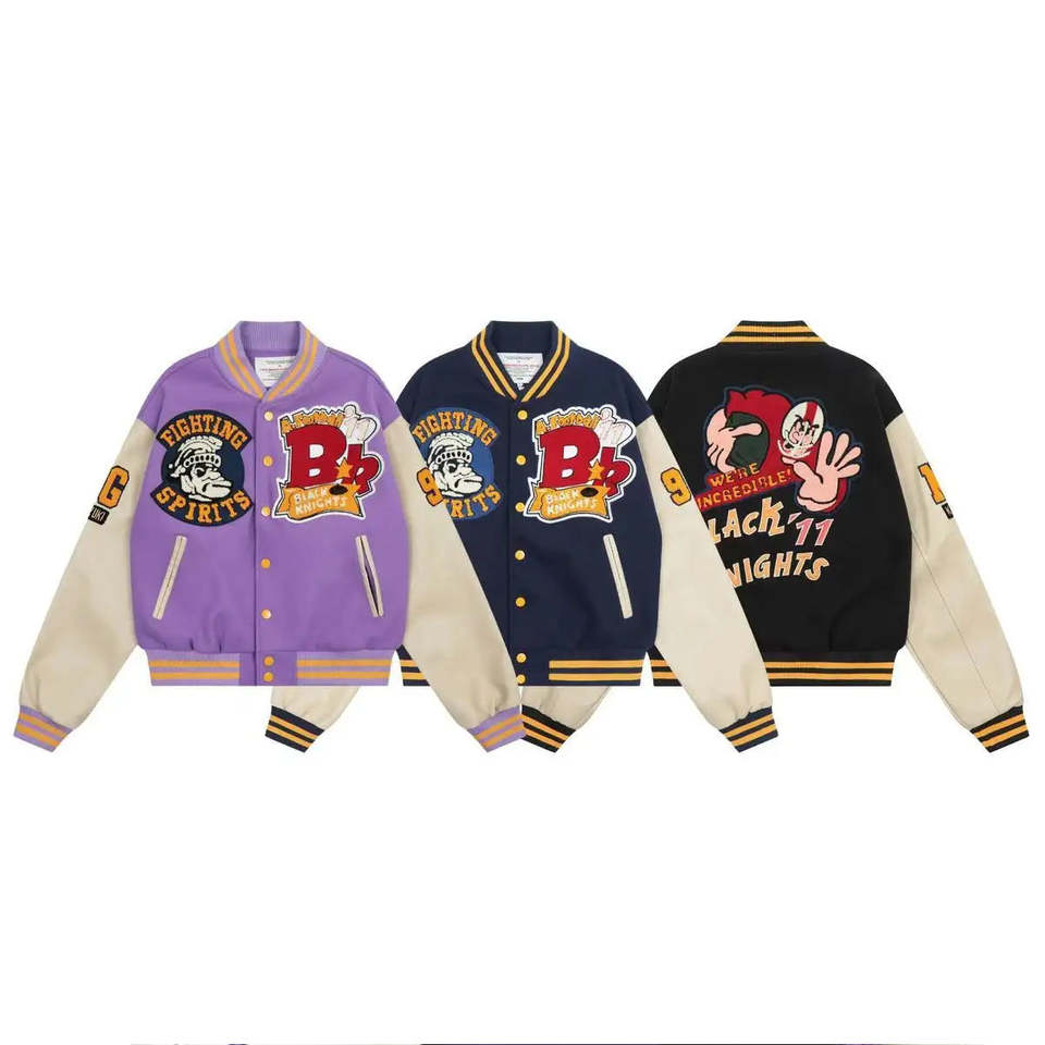 Men's High Quality Trendy Winter Varsity Baseball Jersey Jacket Stand Collar Embroidery High Street Windproof Breathable