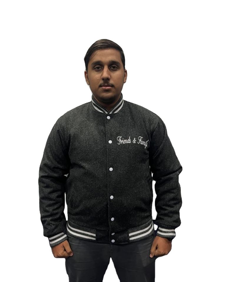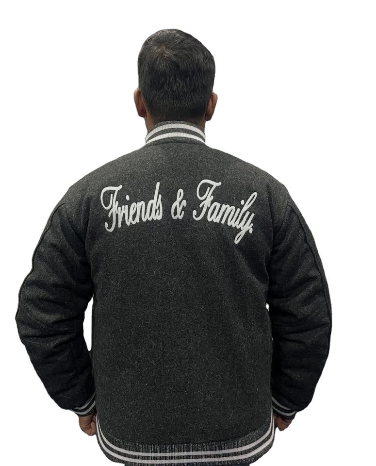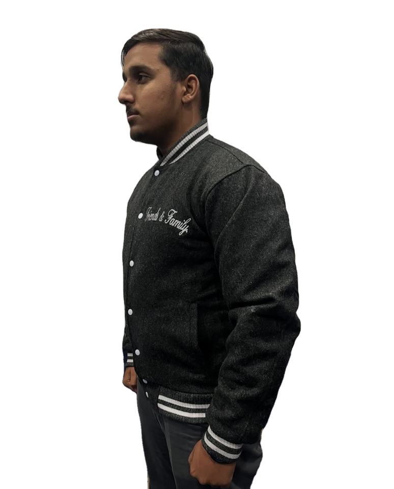 Men's High Quality Wool Varsity Bomber Jacket in Grey & Black Real Cowhide Leather Windproof Real Cowhide Sleeves for Winter