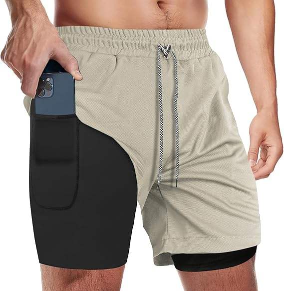 Men's High Street 5 Inch 2-in-1 Compression Gym Shorts Liner Solid Polyester Running Sports Athletic Workouts Mesh Workout