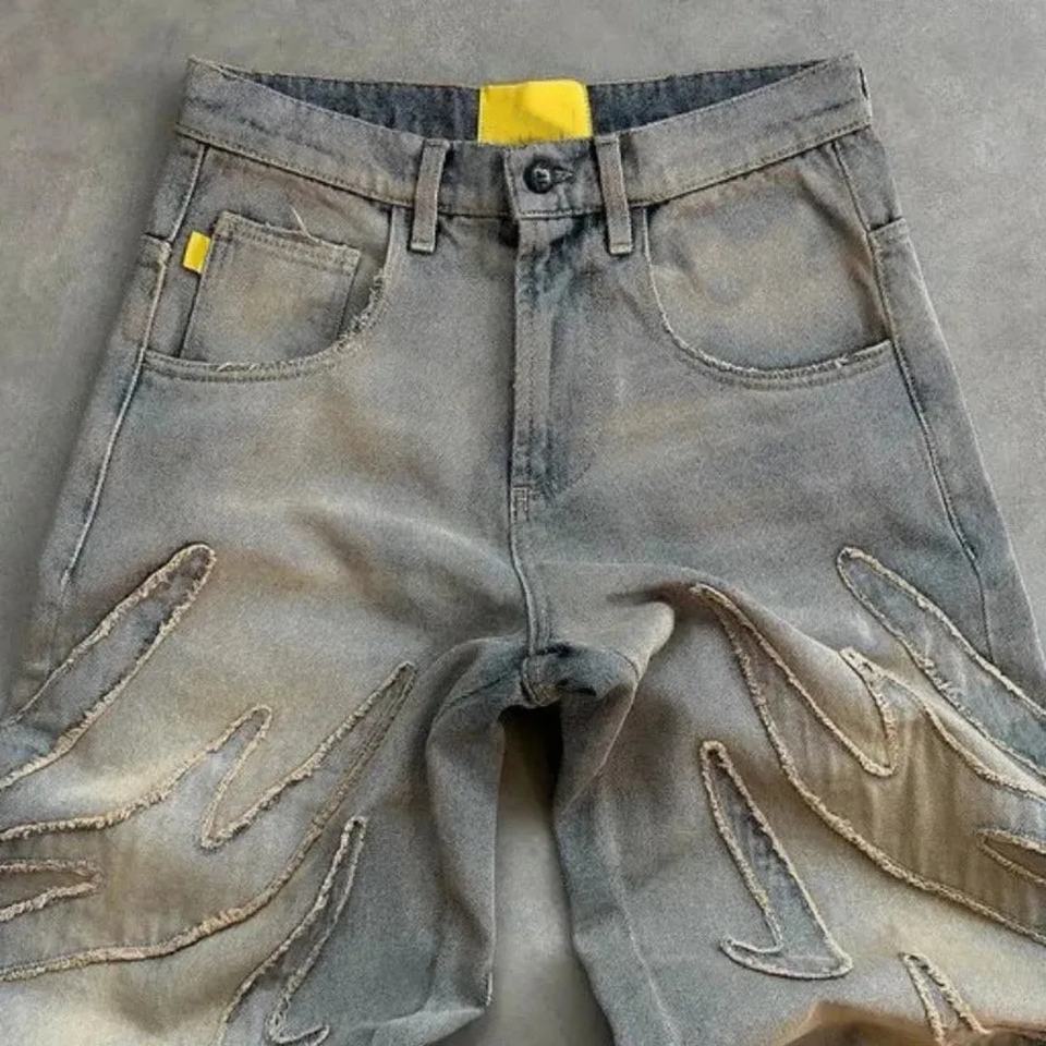 Men's High Street Jeans Custom Men's High Quality Baggy Jeans Y2k Embroidered Black Jeans
