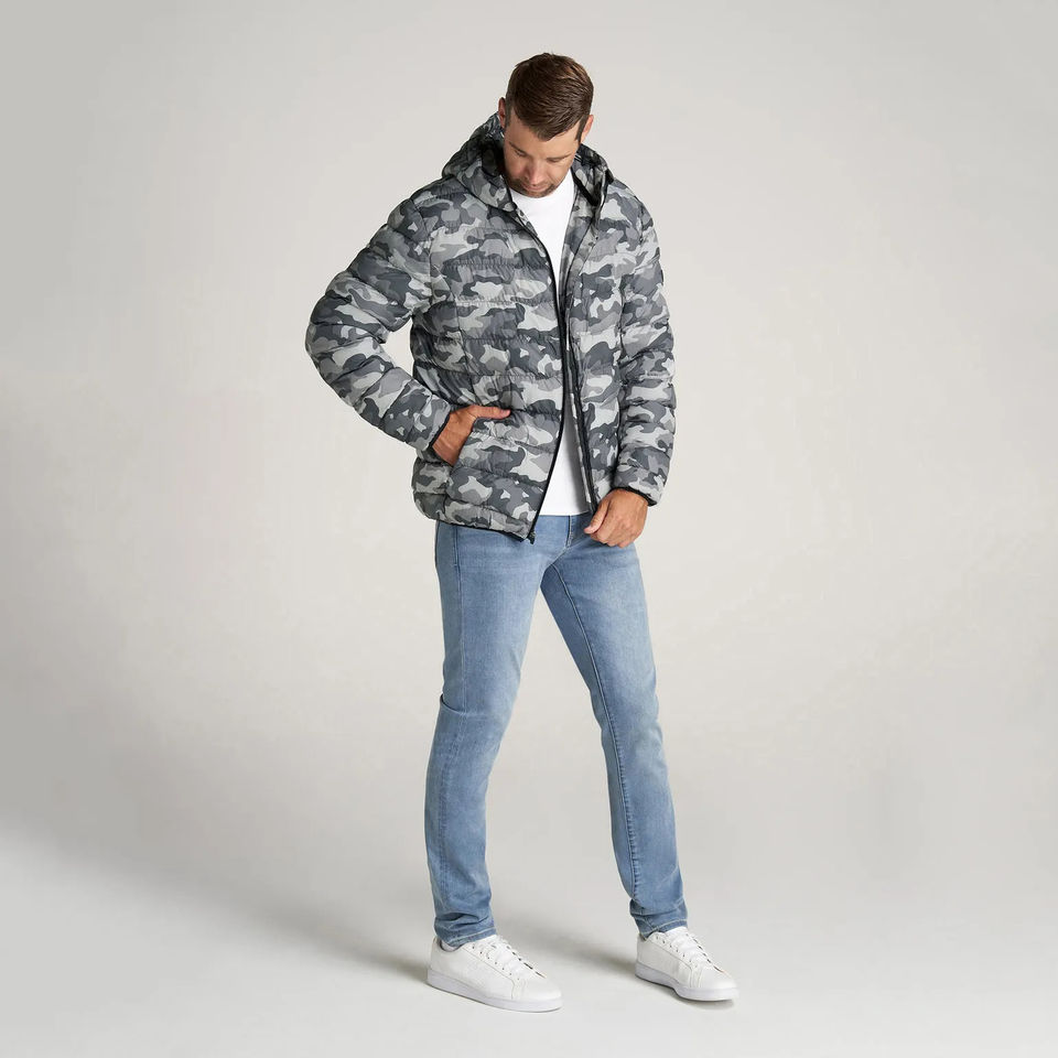 Men's High Street Style Long Sleeve Camo Design Winter Puffer Jacket Factory's New Arrival Customized Canvas Fabric Logo Printed