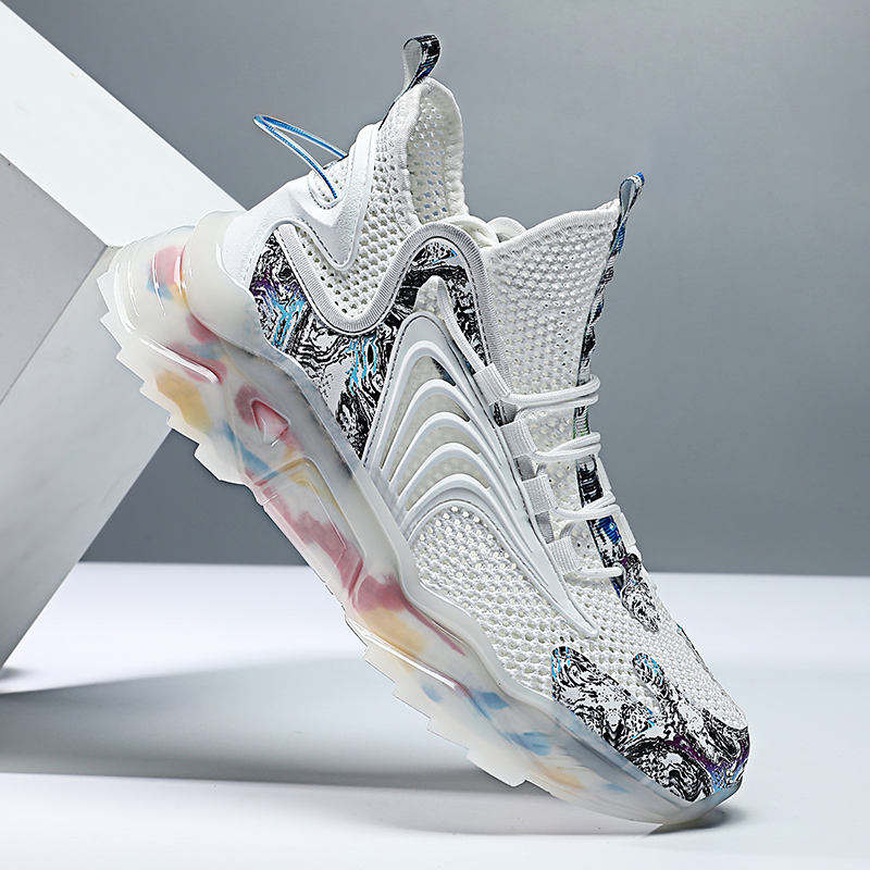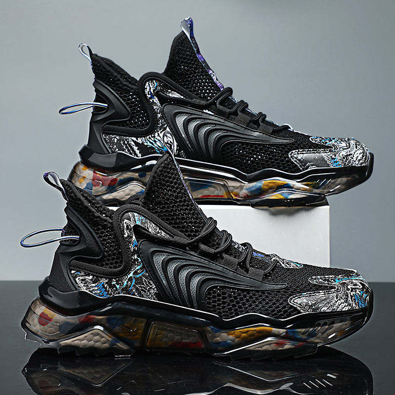 Men's High-Top Graffiti Sneakers New High-Style Chunky Mesh Jogging Shoes for Walking