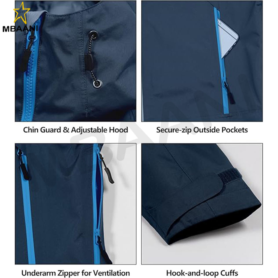 Men's High-performance 3L Hard Shell Waterproof Rain Jacket Breathable Rain Gear for Hiking, Travelling
