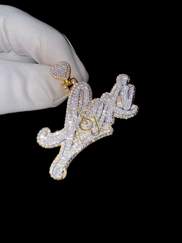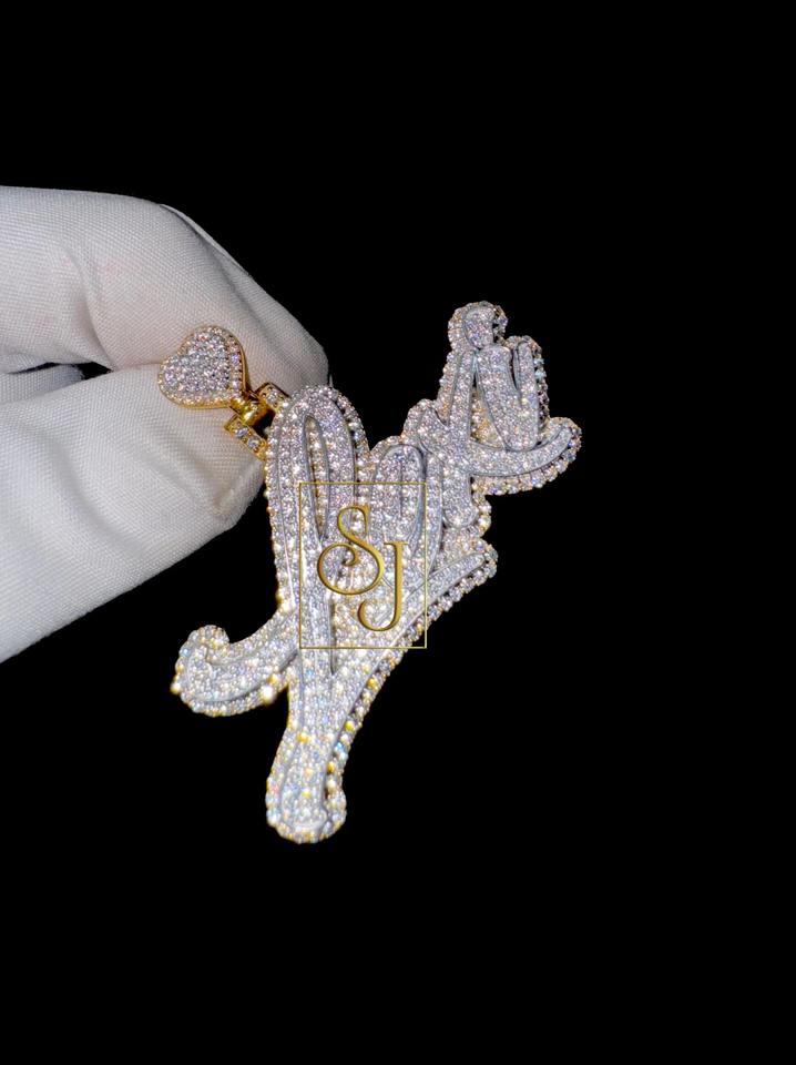 Men's Hip Hop 925 Solid Silver Iced Custom Initial Name Necklace With Heart Bail VVS Moissanite Diamond Big icy Pendant for Gift