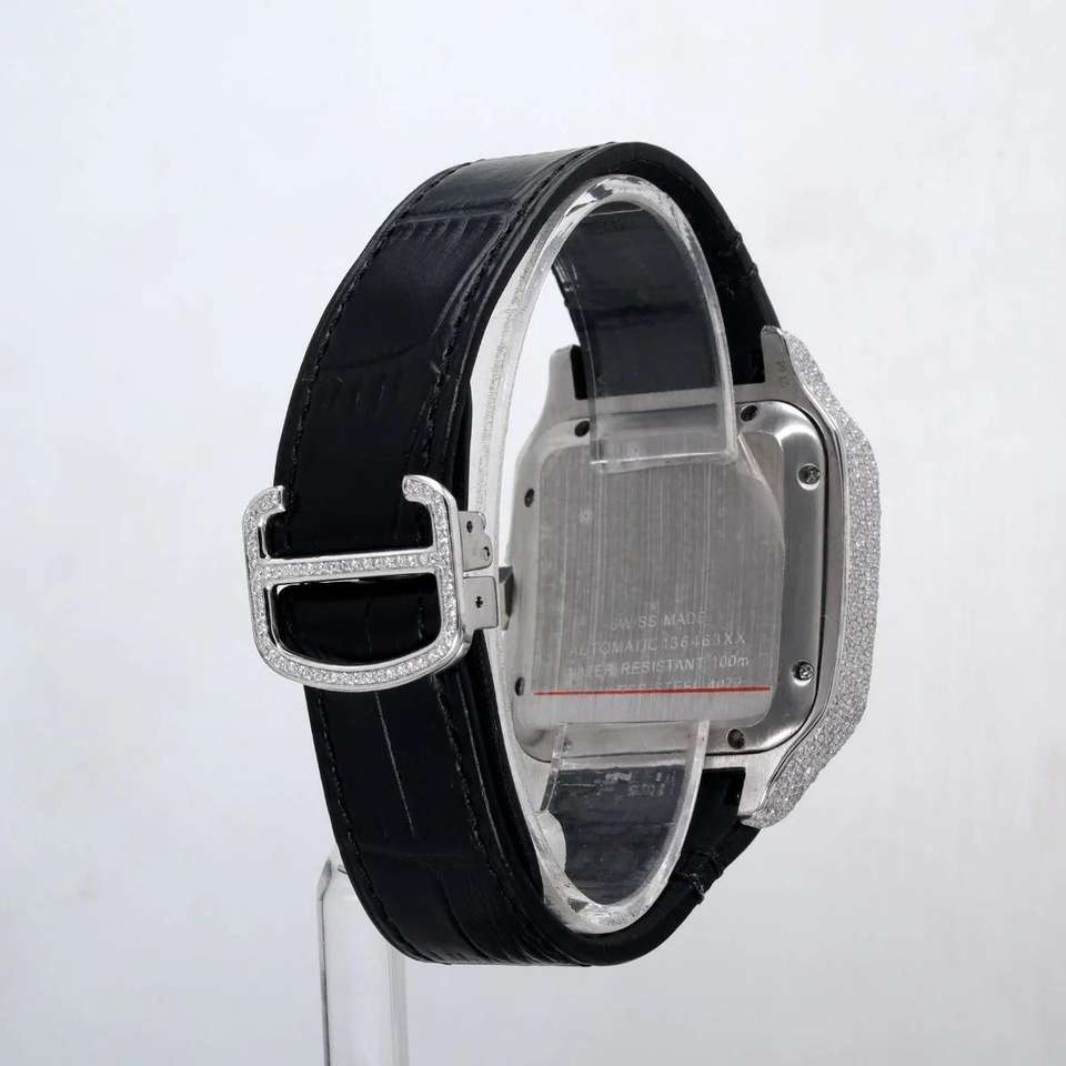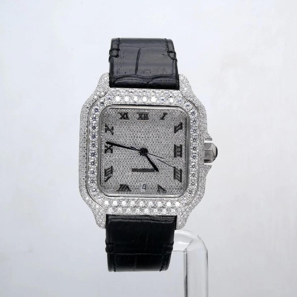 Men's Hip-Hop Bling Leather Belt Iced Bezel Silver Big Face Watch Tester Pass VS Chrono Custom Logo Box Included FINIXGEMJEWEL