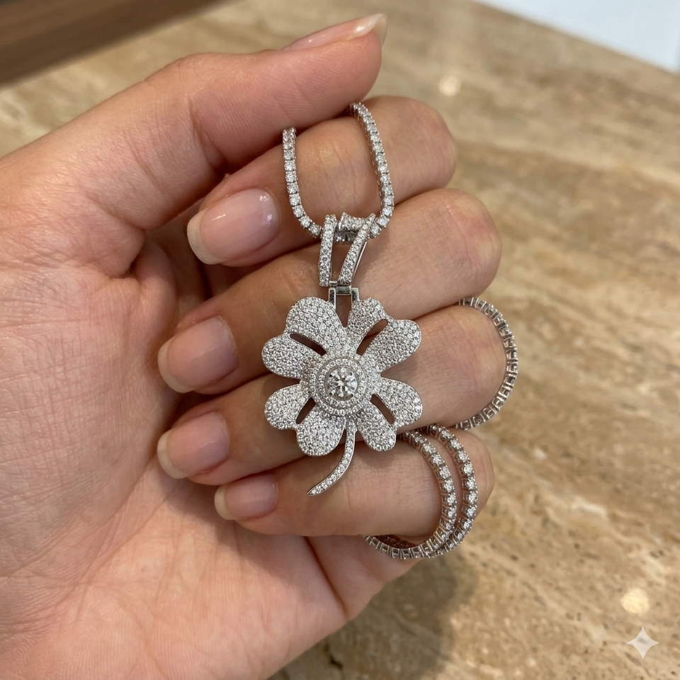 Men's Hip Hop Fine Rapper Jewelry Iced 925 Silver Moissanite Flower Lucky Initial Number Custom Charms Big Pendant Party Rhodium