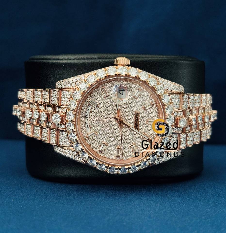 Men's Hip Hop Style Sport Watch New Collection with Labgrown Diamond Stainless Steel Analog Dial Glass Window Iced Cut Charm