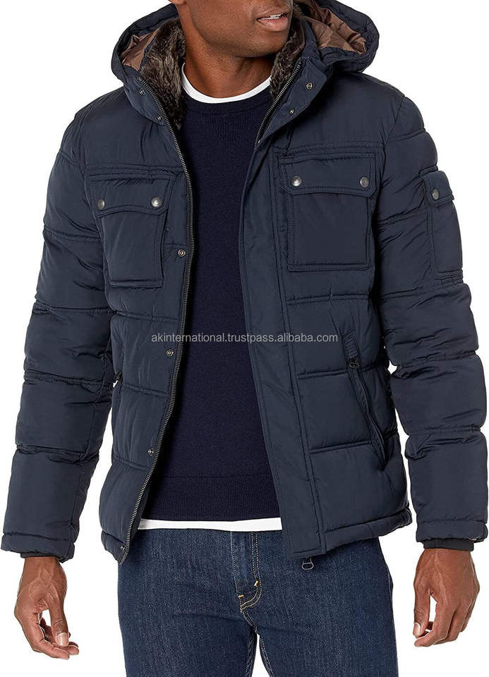 Men's Hooded Puffer Jackets Coats Winter Warm Zipper Casual Padded Outerwear Coat Winter Hooded Customize
