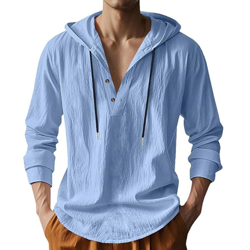 Men's Hoodie Long Sleeve Button Shirt Casual Hawaiian Beach Yoga Sweatshirt