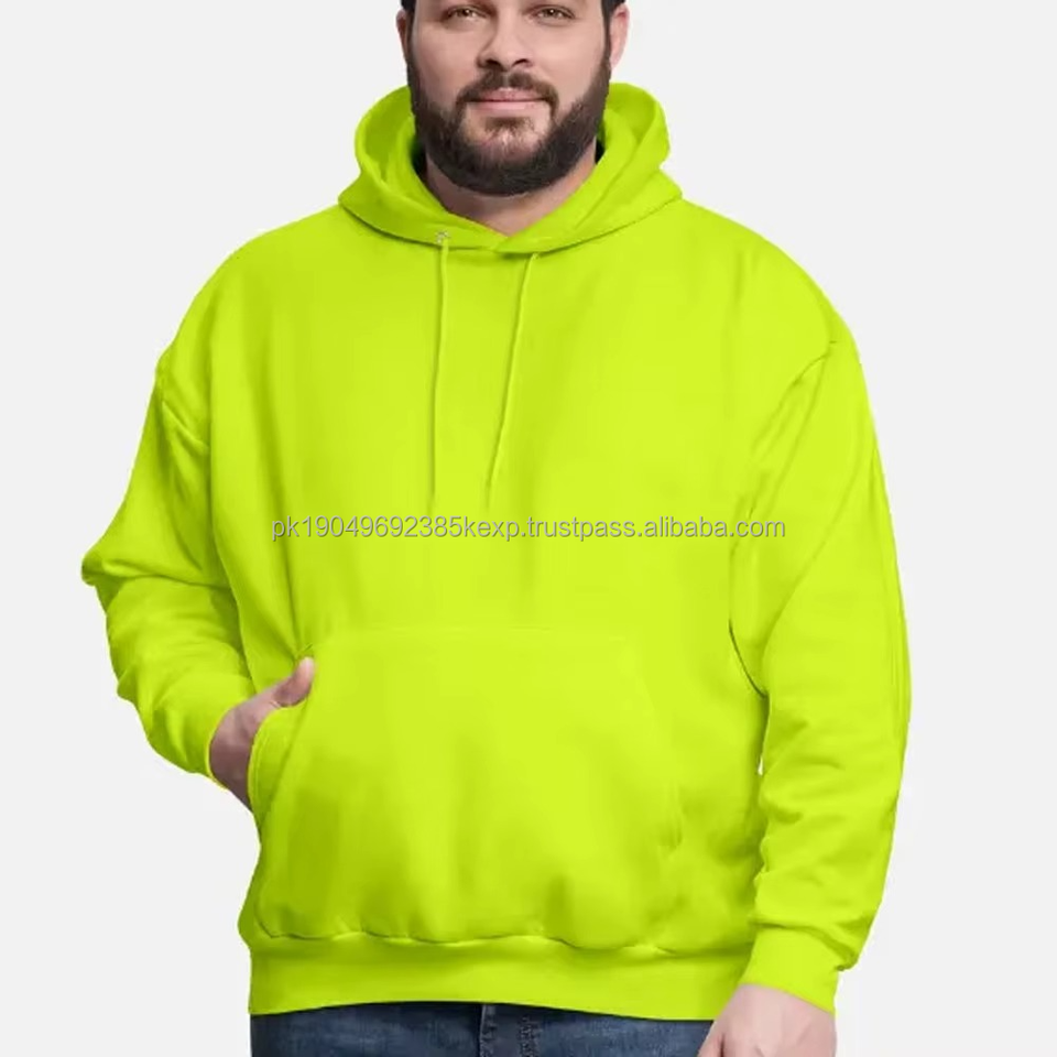 Men's Hoodie with Embroidered Side Design 100% Cotton Basics with Cotton Blend Anti-Pilling Neon Green Men's Hoodie