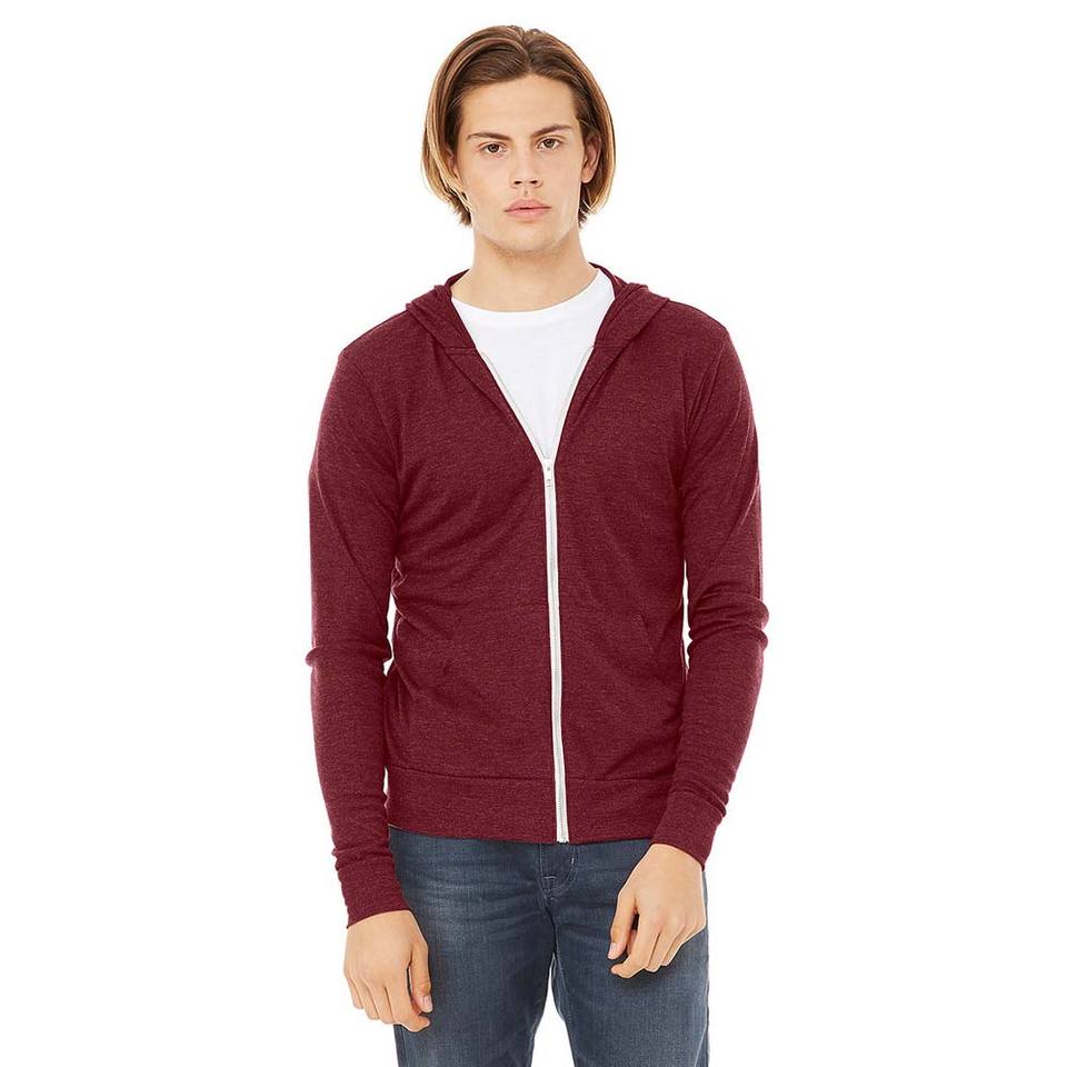 Men's Winter Embroidered Zip-Up Fleece Hoodie Sweatshirt-Lightweight Cotton/Bamboo Blend