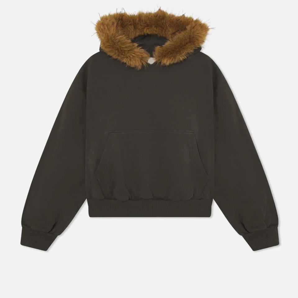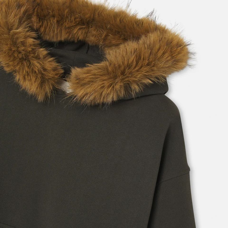 Men's Hoodies Sweatshirts Top Quality Cotton Polyester Pullover Streetwear Heavyweight Puff Printing Brown Faux Fur Trim Hoodies