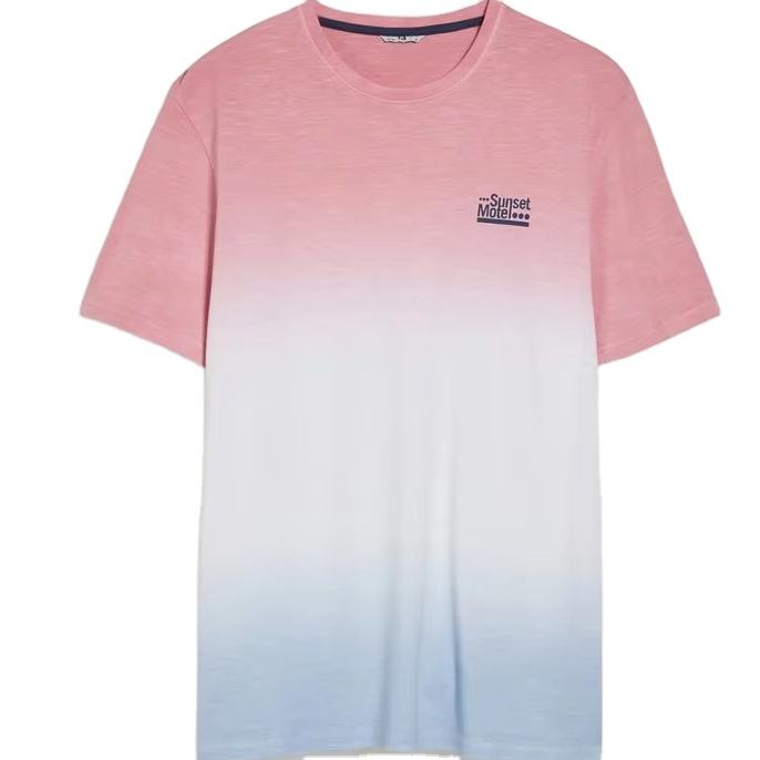 Men's Hot New Round Neck Tie Dye T Shirt 100% Cotton Hip Hop Street Wear Plain Short-Sleeved T Shirt with Front Logo