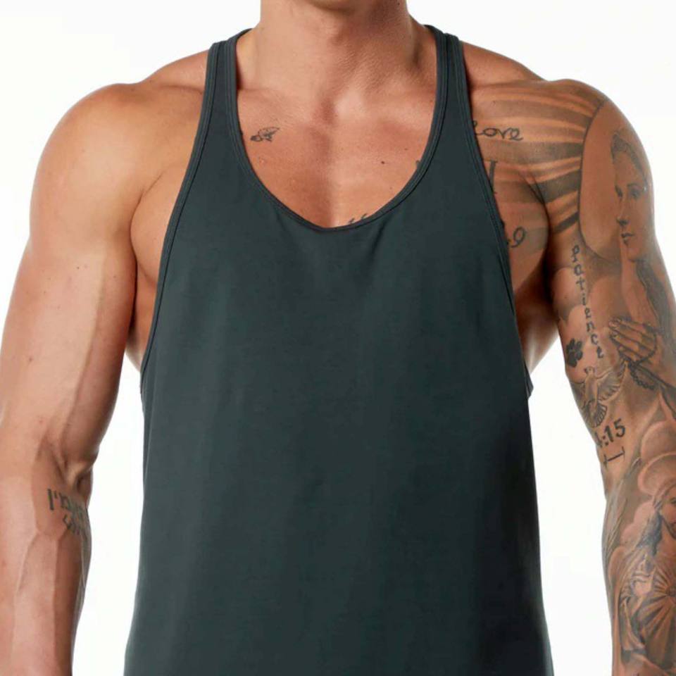 Men's Hunter Green Tank Top 94% Cotton 6% Spandex Relaxed Fit Sweat-Wicking Breathable Low Cut Neckline Open Racerback Stringe