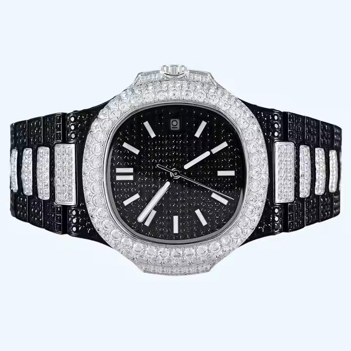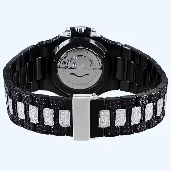 Men's ICed Black Moissanite Diamond Watch Luxury Hip Hop Bling Round 40mm Analog Glass 20mm Automatic Movement Fashion Charm