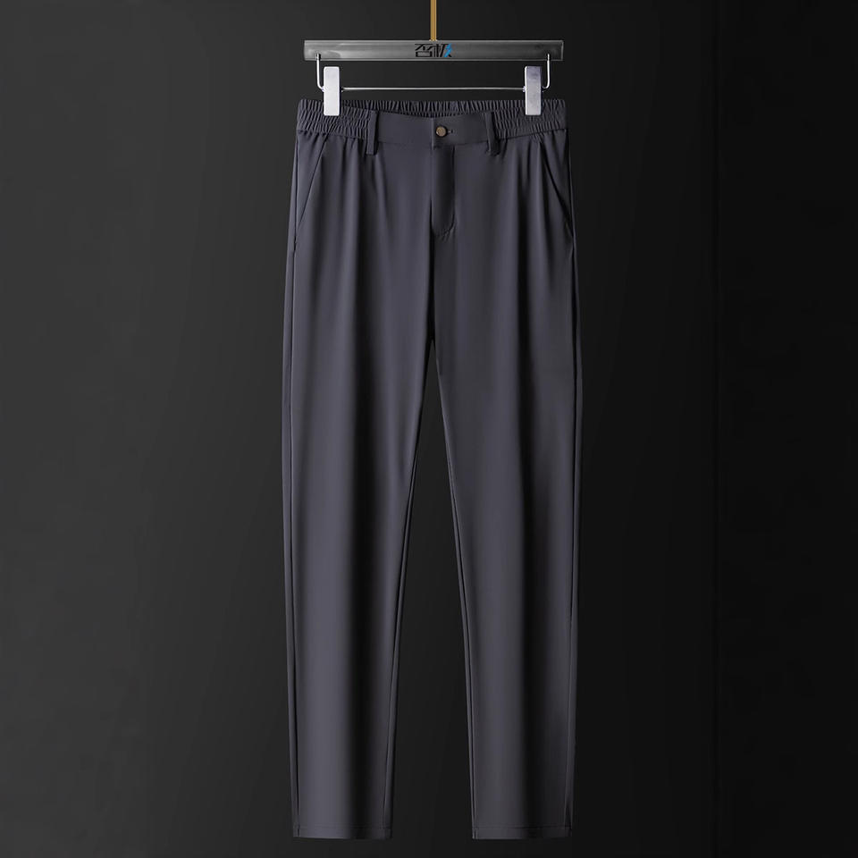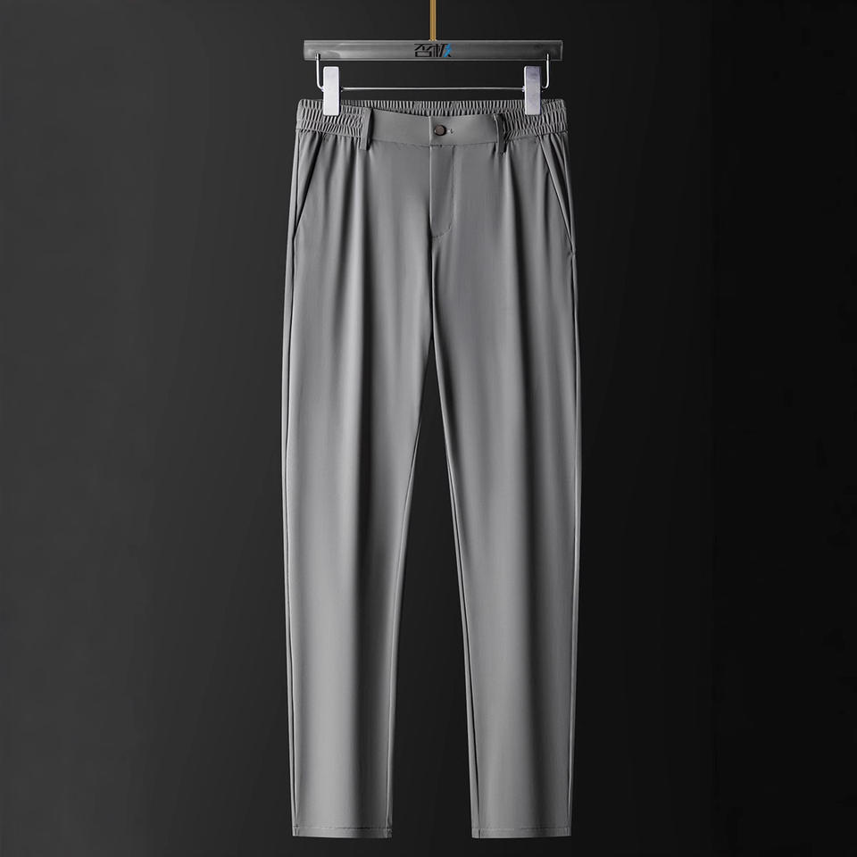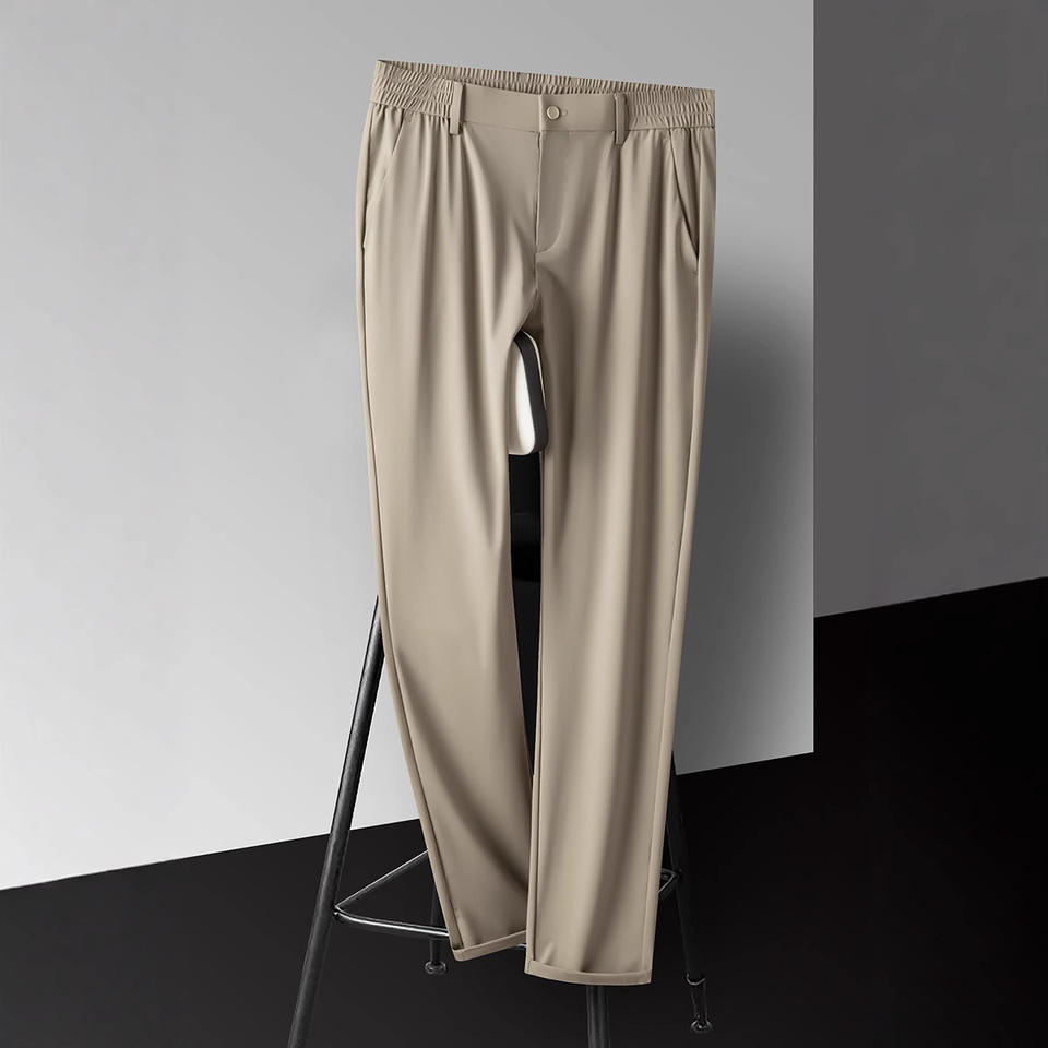 Men's Ice Silk Business Pants, Elastic and Breathable Solid Color Summer Trousers for Young Men