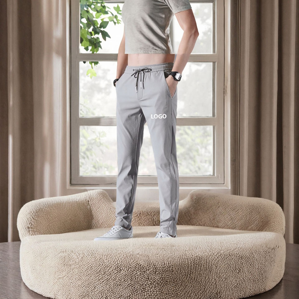 Men's Ice Silk Elastic Casual Pants Lightweight Summer Sports Sweatpants Breathable Loose Straight Mid Trousers Work Sports