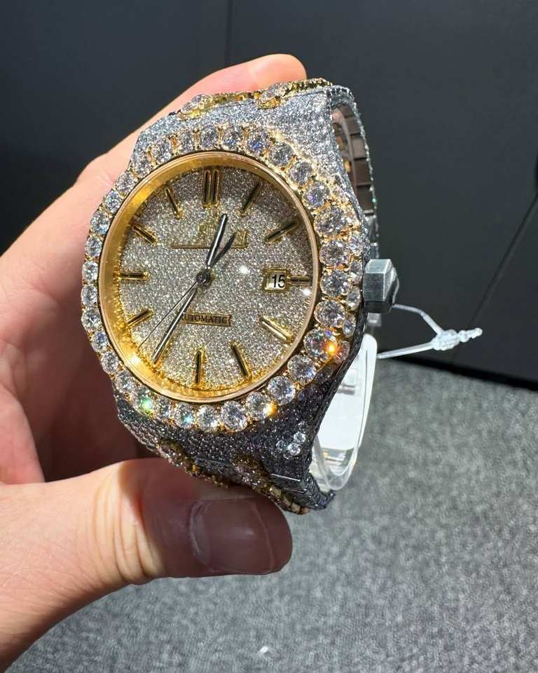 Men's Iced-Out Analog Quartz Watch Crystal Rhinestone Stainless Steel Wrist Bracelet Dial Fashionable Diamond Watch