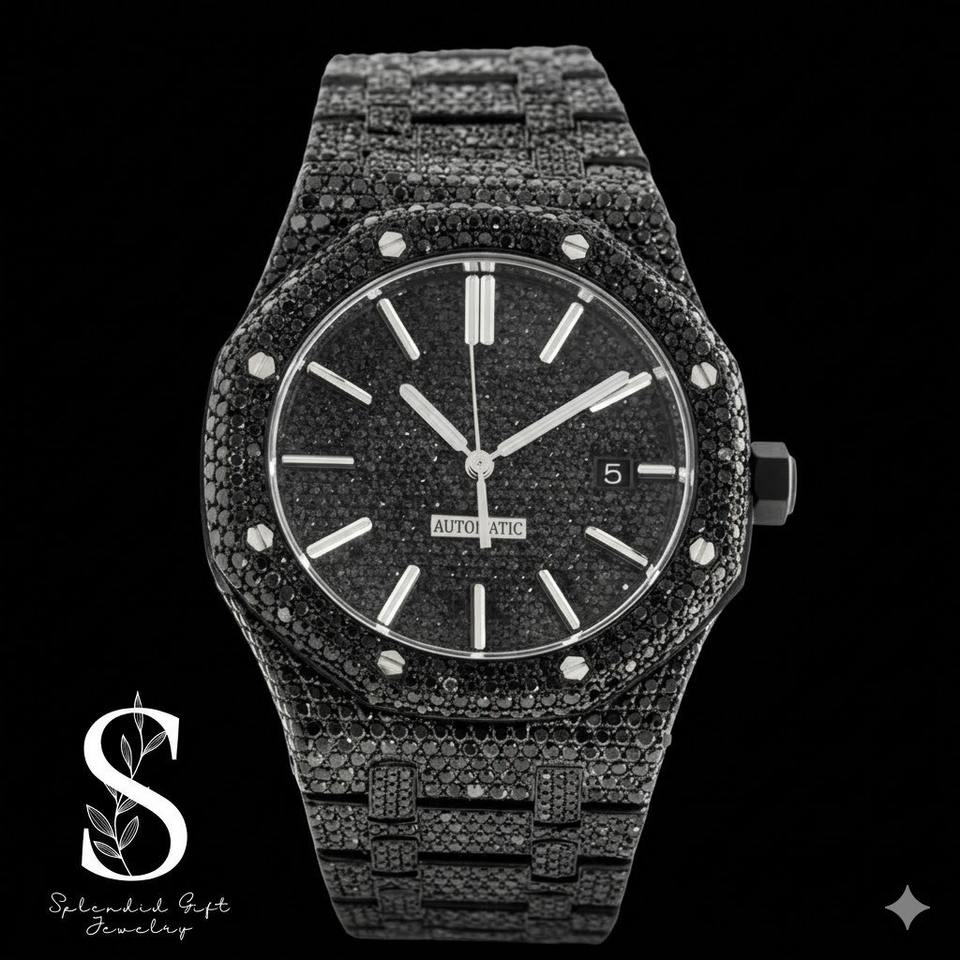 Men's Iced Out Hip Hop Bussdown Automatic Diamond Watch Black Moissanite Fashion Jewelry for Business Use