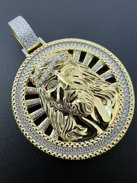 Men's Iced Out Moissanite Jesus Fine Jewelry Pendants & Charms Medallion Solid 925 Sterling Silver in Rhodium or 14k Gold Finish