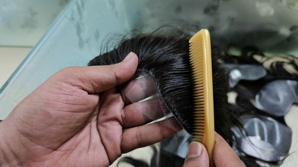 Men's Indian Remy Hair Toupee 0.05-0.14mm Full Lace & PU Base Deep Body Wave Hairline Forehead Front Coverage